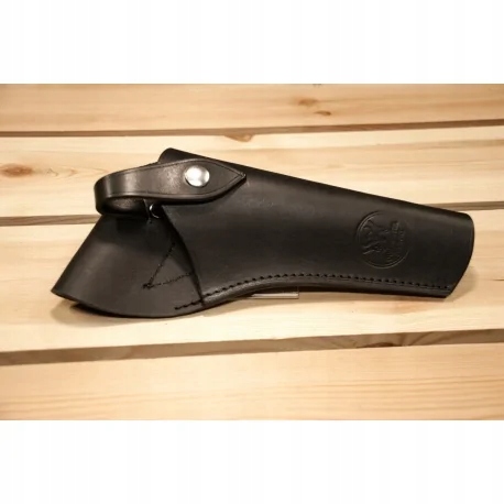 Кобура для револьвера с черным порохом изготовлена из коровьей кожи растительного дубления.
