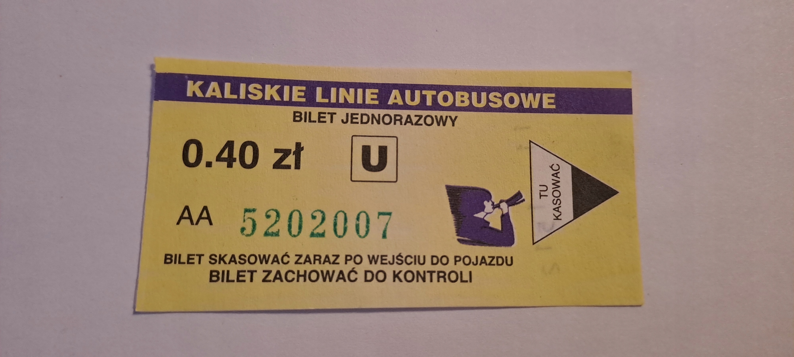 Оплачивая «Калиш билет pln 0,40 - автобусные линии Kalisz» данное изделие из «Общественный и автобусный транспорт» вы можете быть уверены, что после оформления заказа, доставки в Украину, вы получите именно то, что заказывали, в оговоренные сроки и европейского качества.