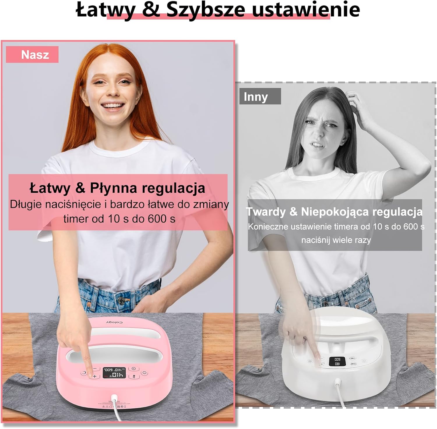 - 【Быстрое и даже нагревание с мощностью 1300 Вт】 Calogy No-Stress Thermal Press с большей мощностью, которая ускоряет нагрев, нагревает до 410 ℉ за 5 минут. Отличная технология контроля температуры делает температурные различия на поверхности пластины только 6 - 8 ℃.