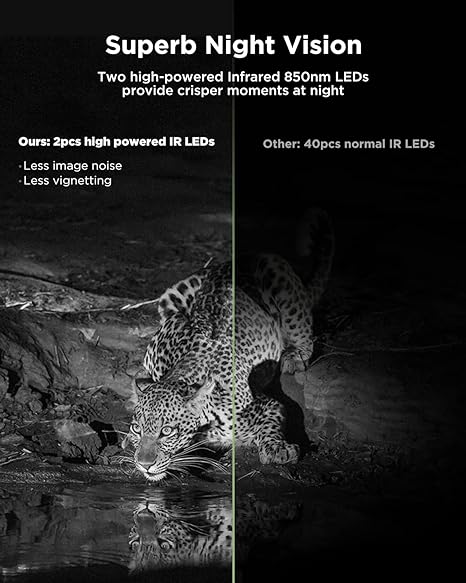 【ФОТОГРАФИИ 40 МП И ВИДЕО ULTRA HD 4K/30 кадров в секунду】Благодаря изображениям 40 МП и съемке 4K 30 кадров в секунду все захваченные объекты получаются четкими и чистыми. Кроме того, благодаря высококачественному оптическому объективу, усовершенствованному датчику изображения и двум большим светодиодам для слабого освещения с длиной волны 850 нм эта камера позволяет запечатлеть удивительные моменты ночной дикой природы со все более четкими деталями. (Примечание: формат видео – MP4, формат фотографий – JPG).