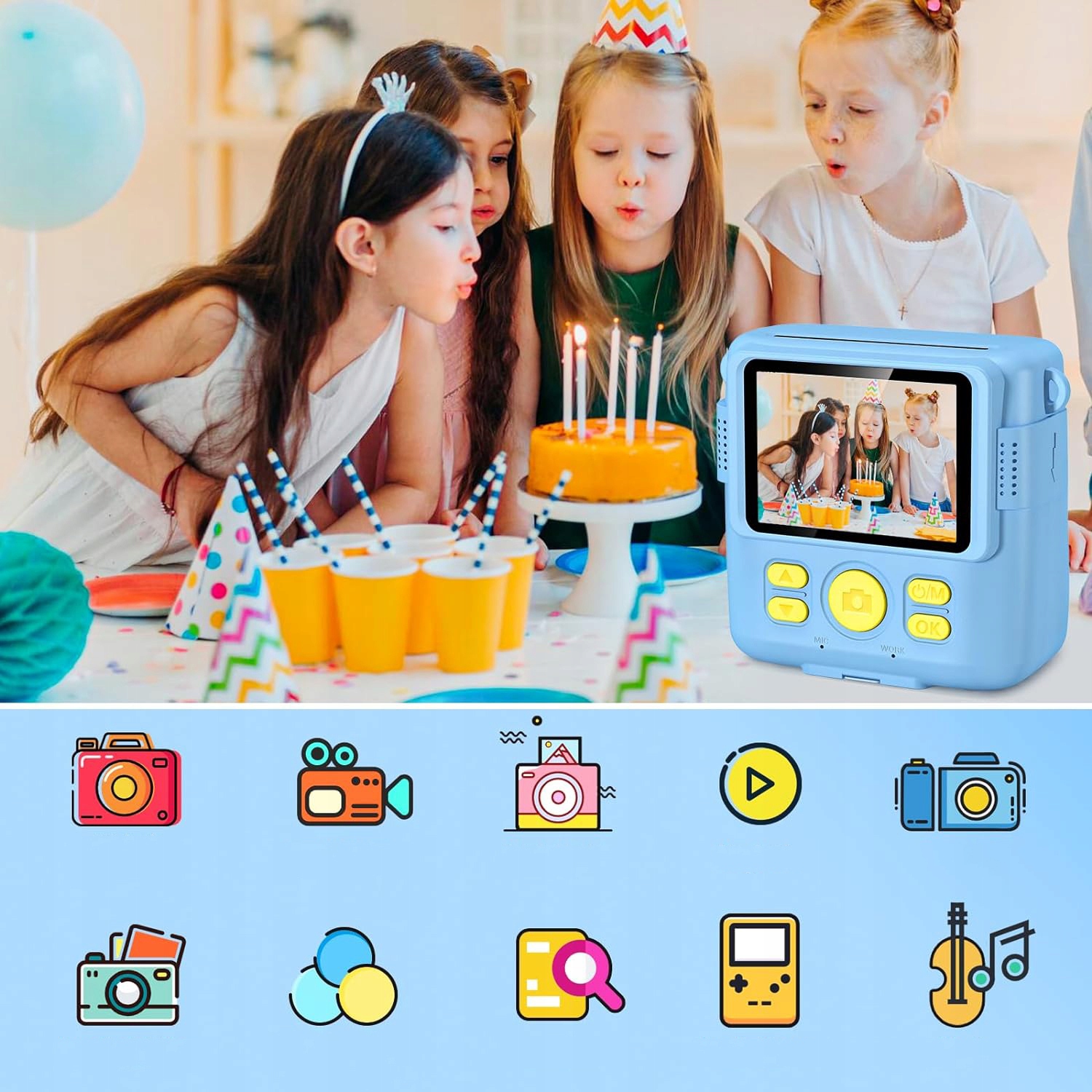 Эта камера моментальной печати предлагает расширенные функции, такие как печать, серийная съемка, покадровая съемка, вспышка, циклическая запись, 16-кратный зум и различные цветные фильтры. Также в комплект входит карта емкостью 32 ГБ (встроенная в слот для карт) для хранения большого количества фотографий и видео. Это дает детям больше вдохновения и удовольствия от фотографирования, позволяя им запечатлеть свое детство.