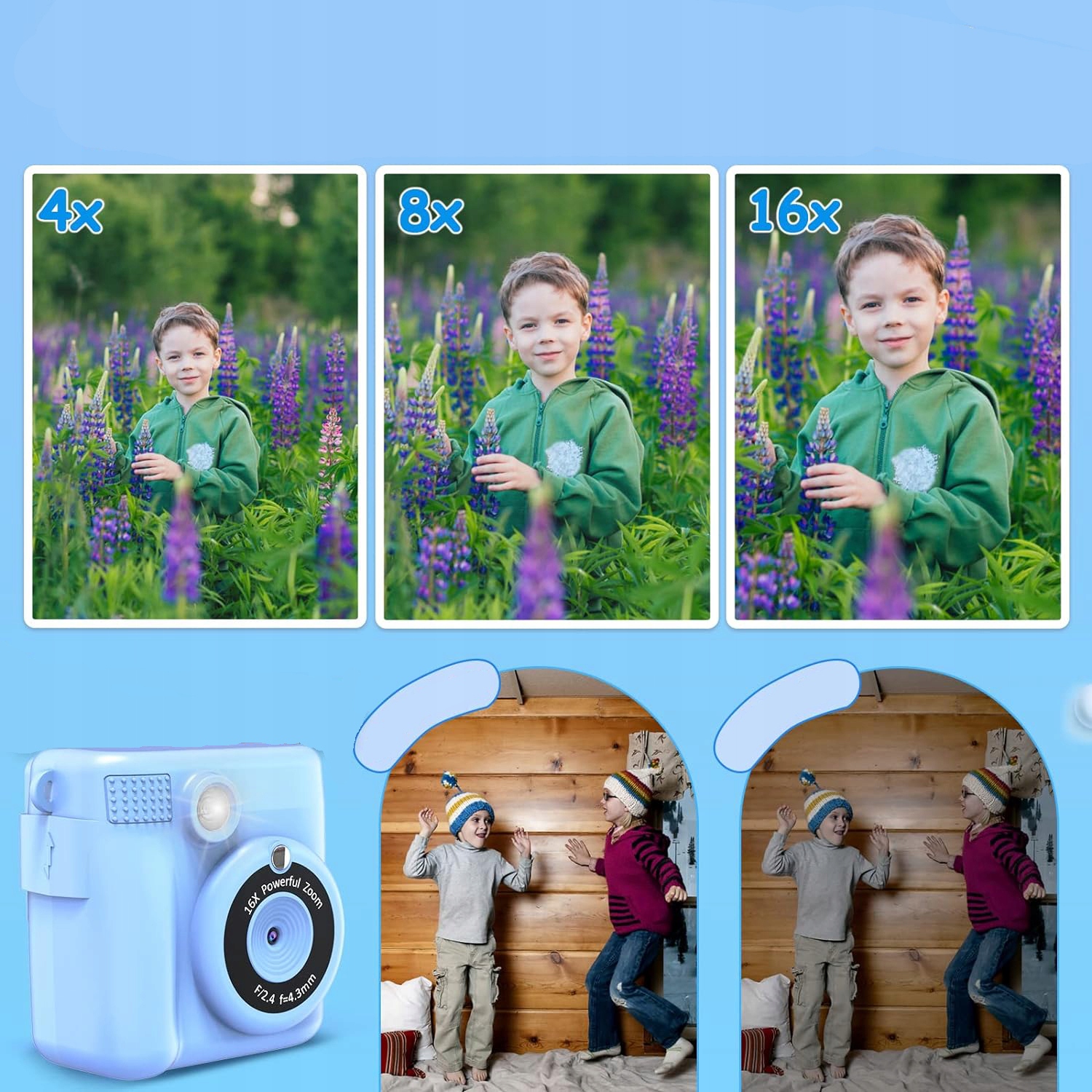 Камера для детей, камера мгновенной печати с печатью, 16-кратный цифровой зум