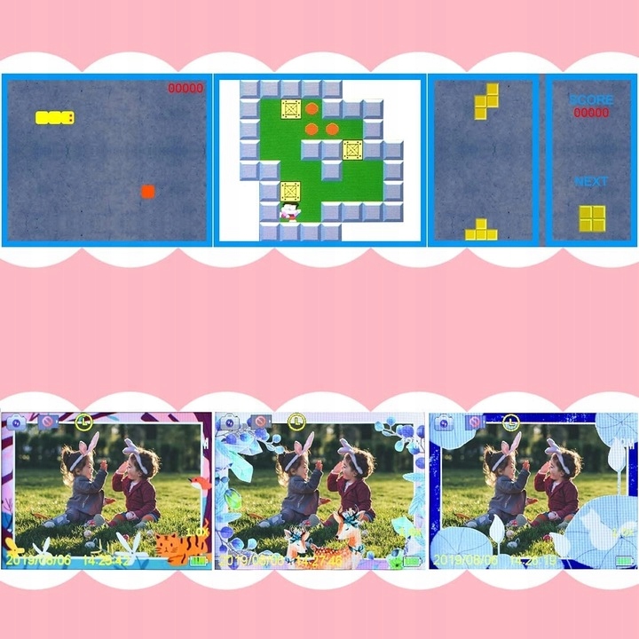 Многофункциональная детская камера. Детские камеры поддерживают видеосъемку, серийную съемку, замедленную съемку, настройку даты и имеют несколько кадров и фильтров для удовлетворения всех ваших требований в различных ситуациях. Встроенные головоломки и музыка сделают игру еще интереснее для детей. Эта детская видеокамера оснащена 2,0-дюймовым экраном IPS, защищающим глаза, чтобы не повредить зрение вашего ребенка.