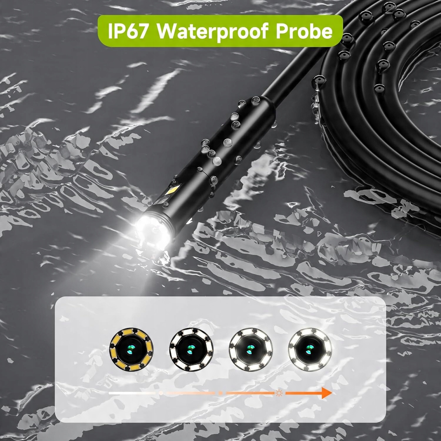 Тройная инспекционная камера ILIHOME поставляется с 10-метровым полужестким кабелем, который подходит для различных проектов. Позволяет легко осматривать водостоки, автомобильные двигатели, стеновые конструкции, системы вентиляции и канализации.
