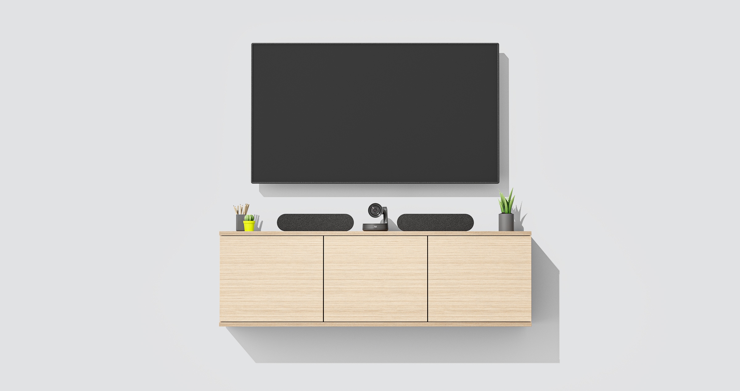 Чрезвычайно простая и гибкая установка системы Rally в больших помещениях с одним или двумя дисплеями.