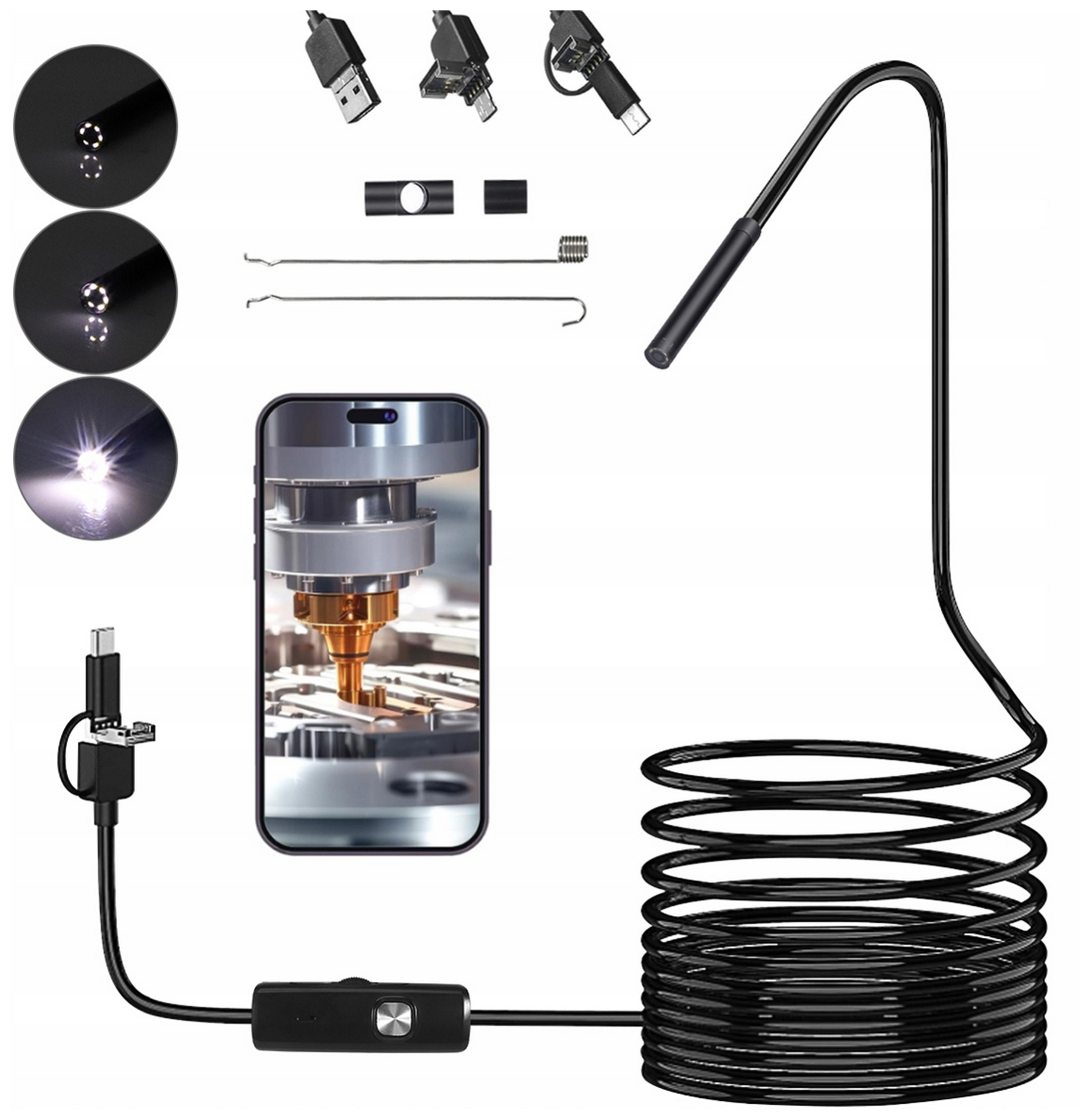 Многофункциональная инспекционная камера 3-в-1 с USB-C — незаменимый инструмент для наблюдения за труднодоступными местами — идеально подходит для дома, мастерской, автомобиля и хобби.