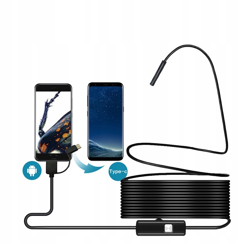 Эндоскоп может работать с телефонами/смартфонами и планшетами, имеющими выход MicroUSB или USB Type C, операционной системой Android и поддерживающими стандарт OTG или UVC, а после использования переходника MicroUSB на USB мы можем подключить эндоскоп к классическим компьютерам/ноутбукам/планшетам с USB порт и операционная система Windows.