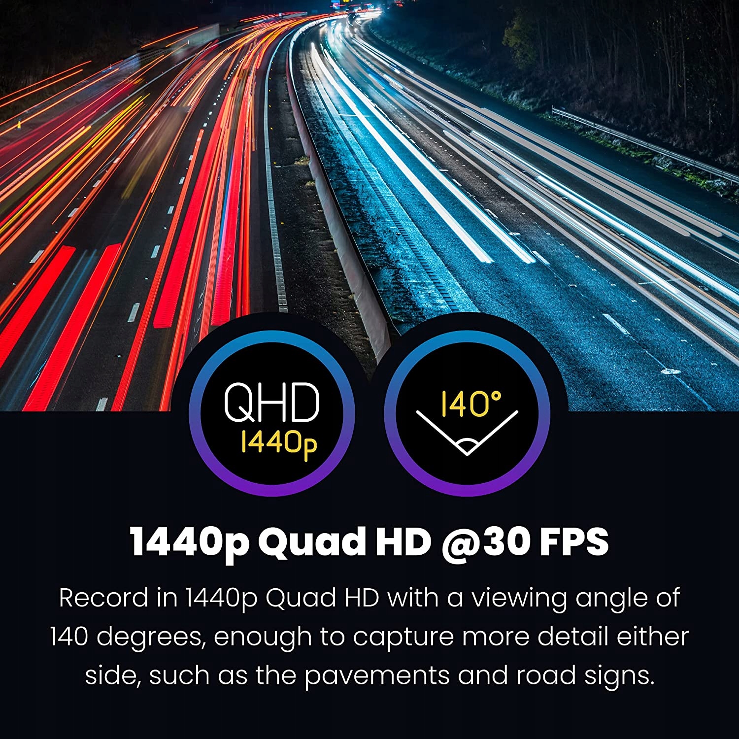 Записывайте свое путешествие по дороге с помощью видеорегистратора HD 1440P/30 кадров в секунду и 1080P/60 кадров в секунду и F1 Объектив .6 для обеспечения высококачественного изображения в дороге. Широкий угол обзора 140° обеспечивает широкий обзор дороги впереди и дополнительную защиту. Отмеченный наградами 2,5-дюймовый сенсорный экран IPS обеспечивает улучшенное разрешение и четкость изображения.