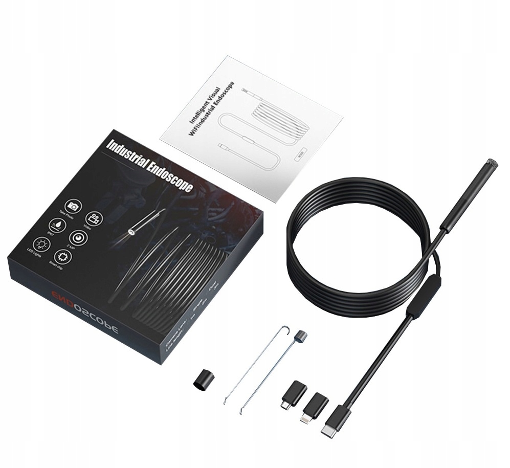 Конец эндоскопа с камерой водонепроницаемый на уровне IP67, поэтому их можно использовать и под водой. Отличное изображение и высококачественные материалы, из которых изготовлен прибор, обеспечивают хорошую работу эндоскопа в любых условиях!