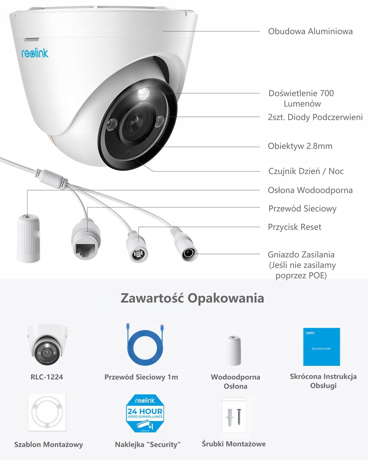 Kamera POE Reolink RLC-1224A 12MP kopułkowa + KARTA GOODRAM 64GB