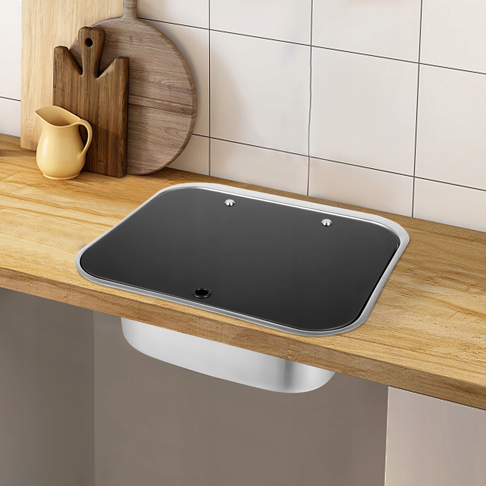 Модный внешний вид: Серебряная раковина очень блестящая и элегантная, а ее черная крышка выглядит модно и универсально. Чистый и лаконичный внешний вид делает его не только практичным помощником, но и модным аксессуаром для вашего кемпера.