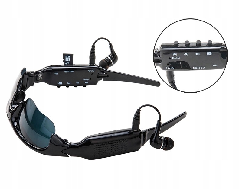 Маленькая и незаметная камера, спрятанная в профессионально изготовленных спортивных солнцезащитных очках, с возможностью прослушивания музыки и записи в формате FULL HD