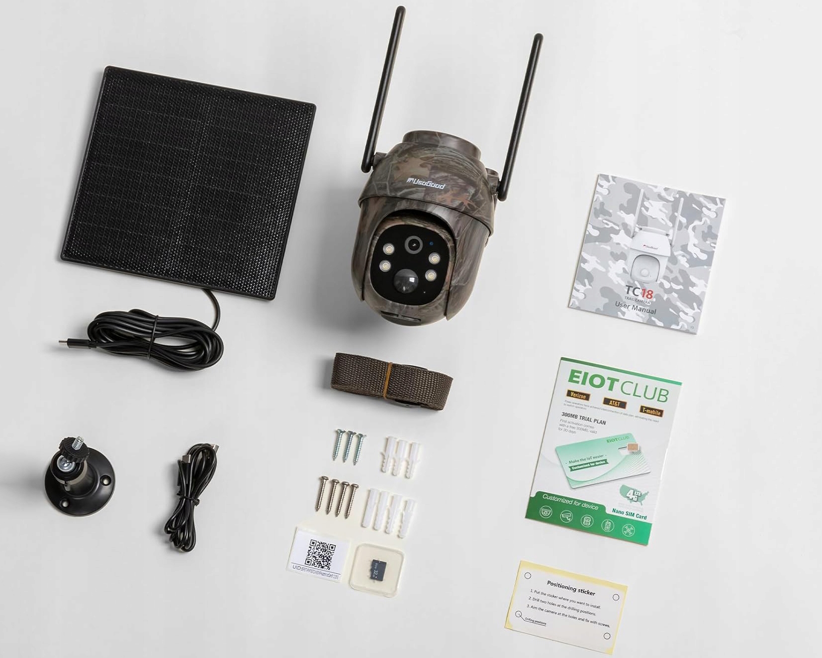 Камера USOGOOD 4G Солнечная камера сотовой связи, идеально подходит для использования в сельской местности, в сараях, сельскохозяйственных фермах, ранах, складах, мотоматах и на строительных участках. Набор включает в себя карту SIM 4G , 6 солнечную панель и батарею 8400 мАч для 300 МБ тестовых данных и непрерывного источника питания.
