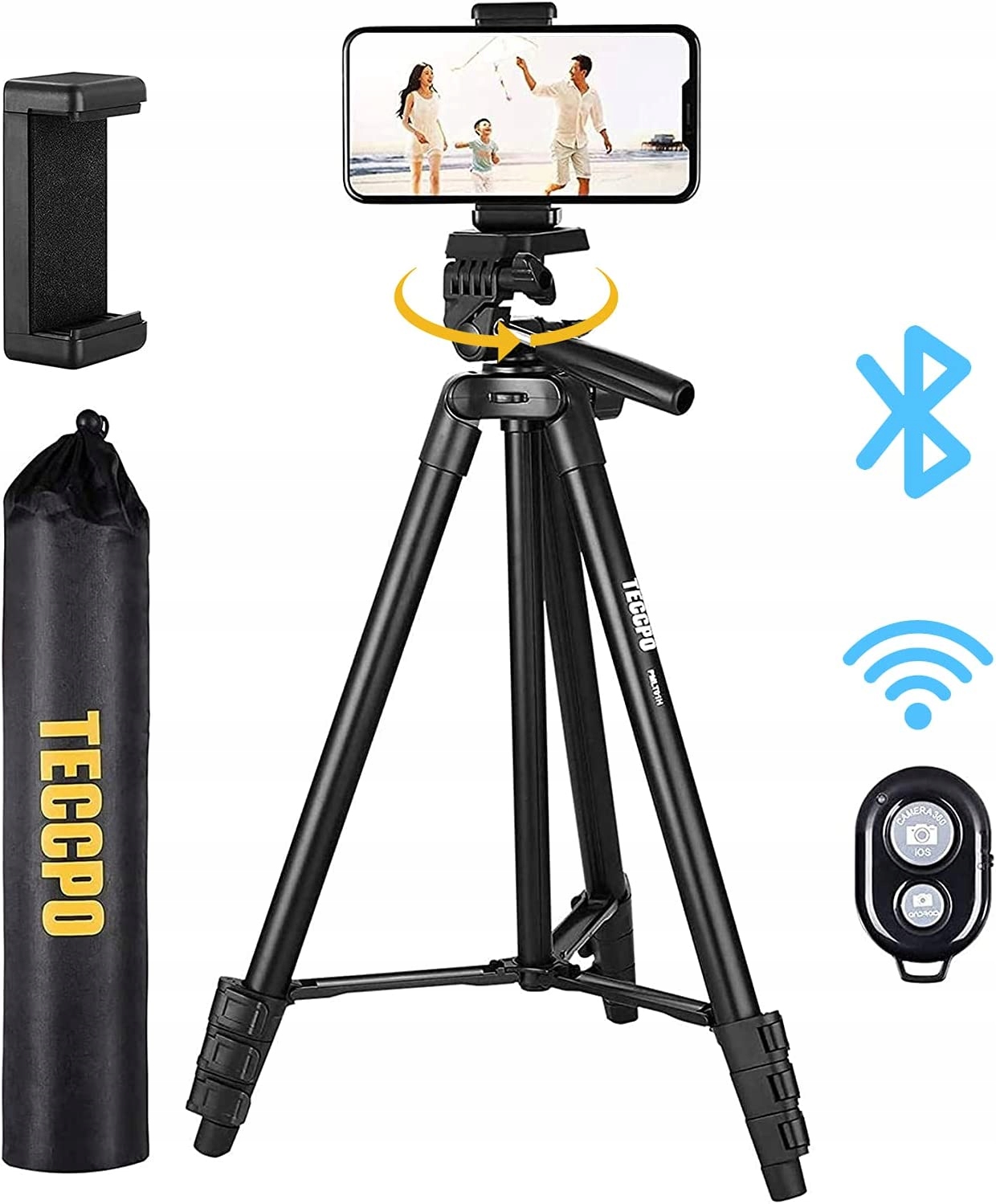 teccpo Compact Leathrod (135 см/53 дюйма) с Bluetooth и универсальным клипком, камера для камеры/видео и перекрестный лазер, роторный голов 360 ° разорван, все, как на реальной фотографии ниже !!!) -59%