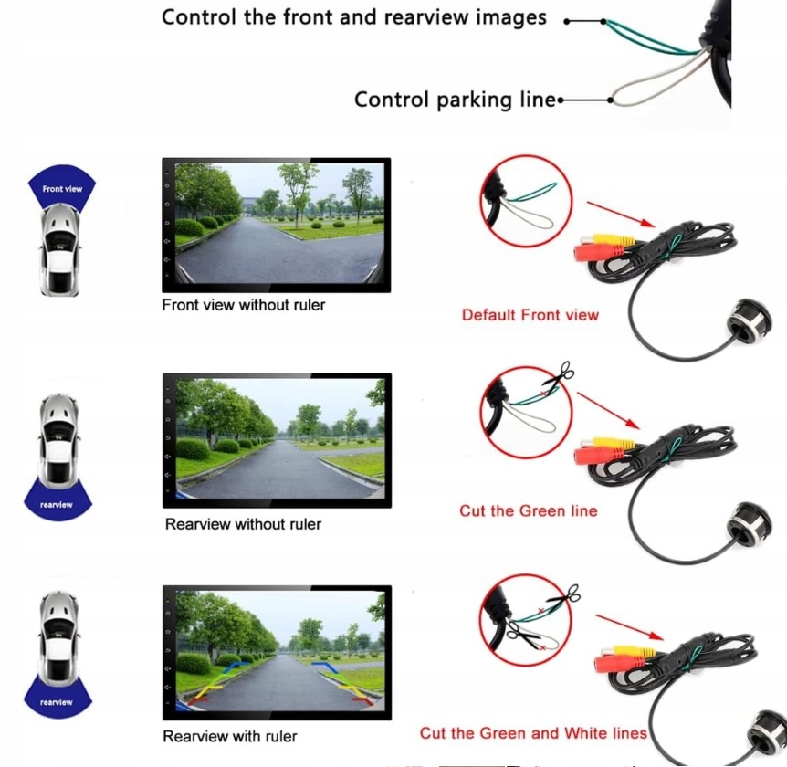 по умолчанию — камера заднего вида. Если вы хотите использовать его в качестве фронтальной камеры, пересеките зеленую линию, чтобы переключиться на фронтальную камеру. Значение по умолчанию — отсутствие парковочной линии. Если вам нужна парковочная линия, обрежьте белую линию, чтобы заменить ее на парковочную линию.