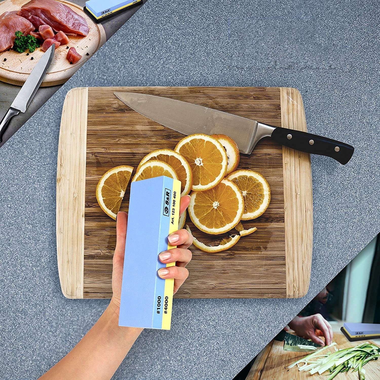 Двусторонний точильный камень для надежной заточки всех типов ножей. Зернистость 1000 и 4000 более деликатная, но все равно идеальна для универсального использования.