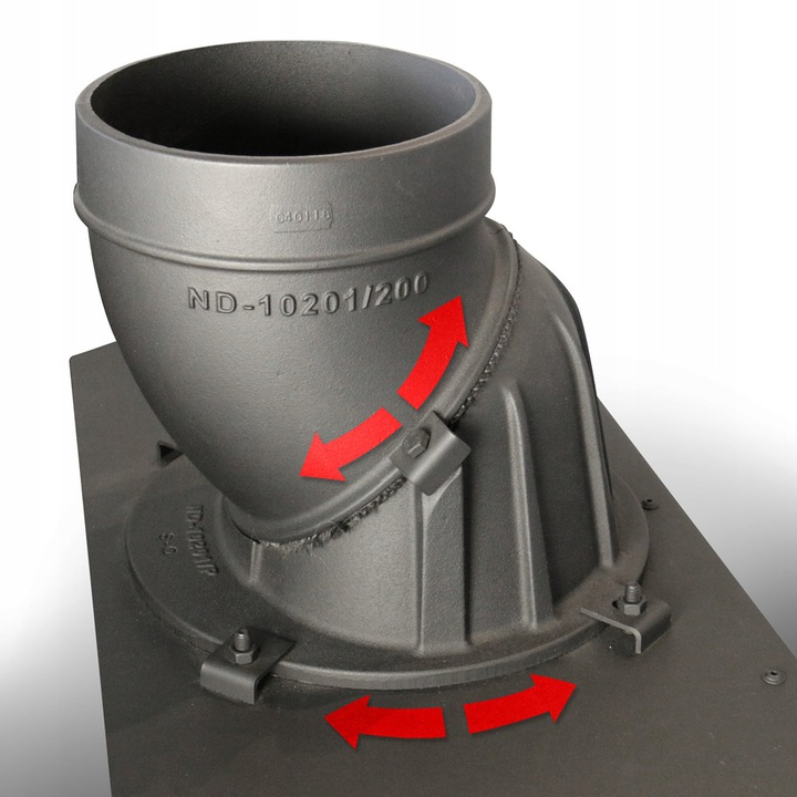 Модель оснащена подвижным вытяжным отверстием, поэтому в случае установки нет необходимости приобретать дополнительные колени. Вы можете легко регулировать угол подключения вкладыша к дымоходной установке.