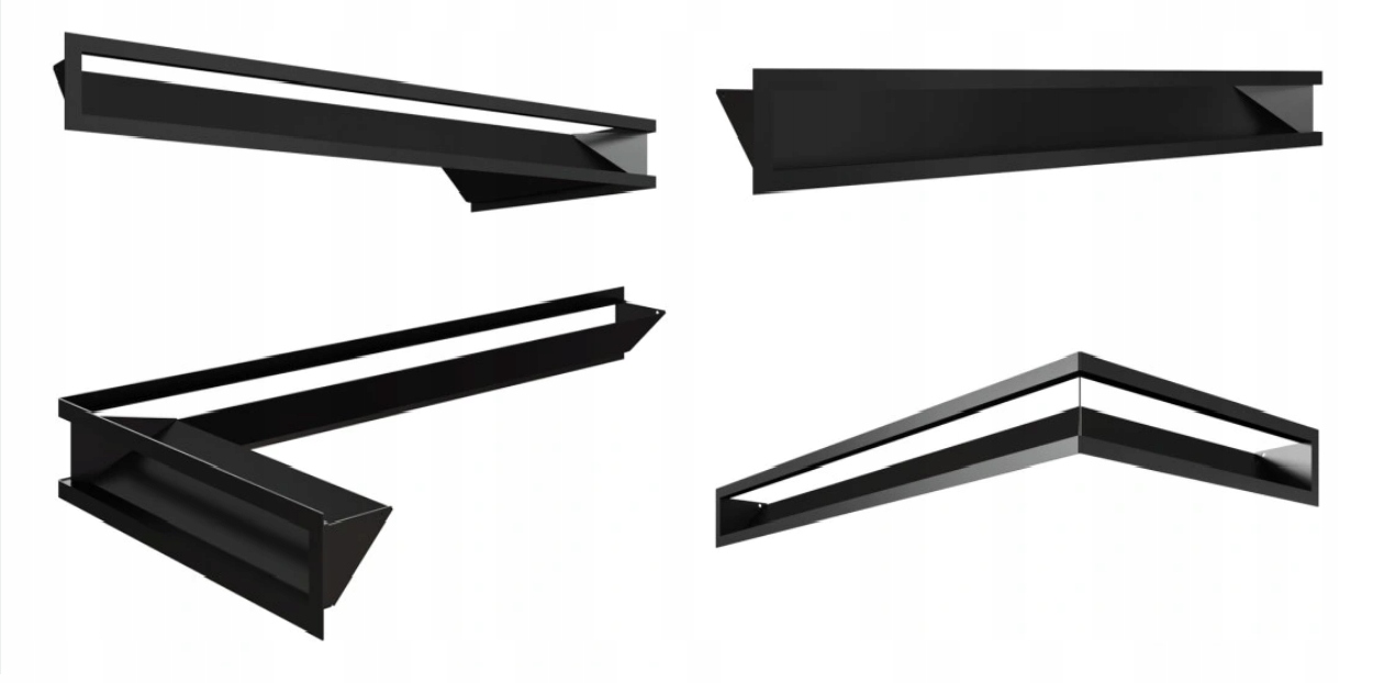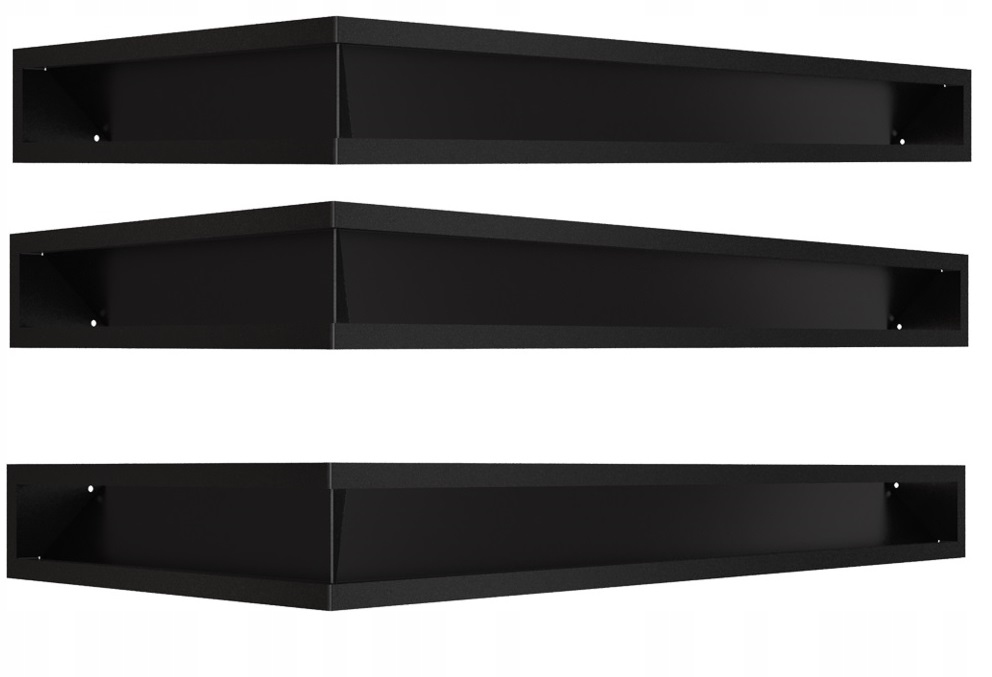 Комплект из 3 шт каминных решеток люфтового типа 45С угловой 800х400х90 для камина с правым боковым стеклом - черный цвет - 2 шт ВВЕРХ и 1 шт НИЗ SF