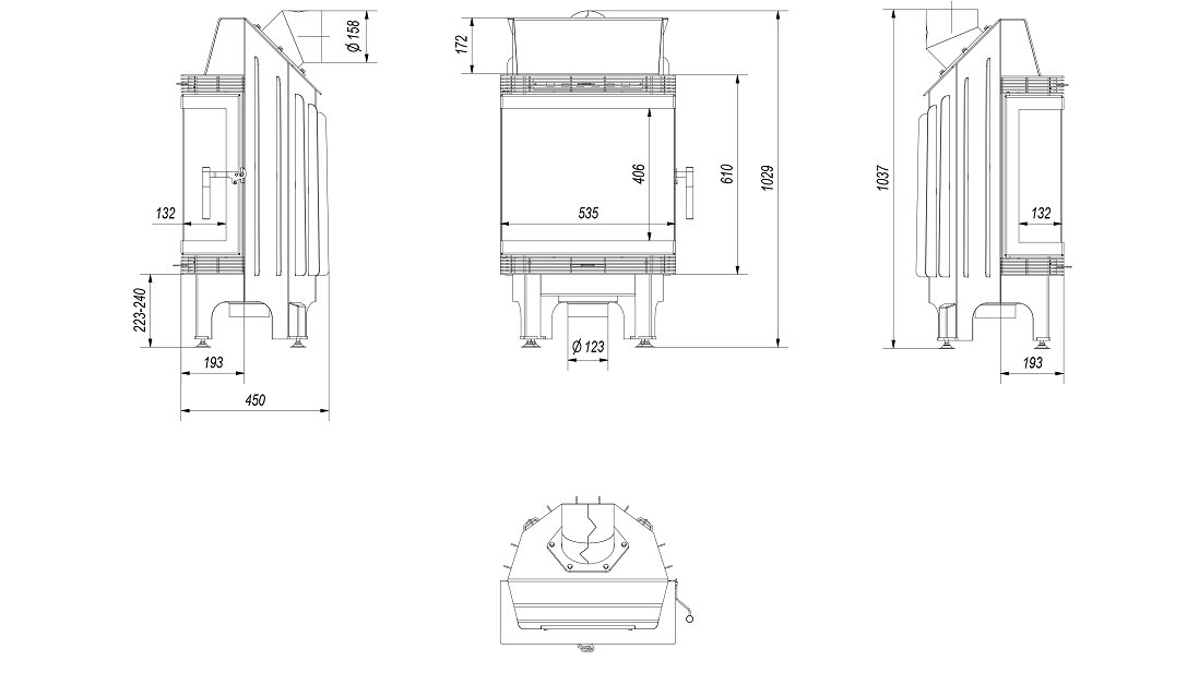 По бокам и сзади вставки расположены радиаторы, увеличивающие поверхность теплообмена