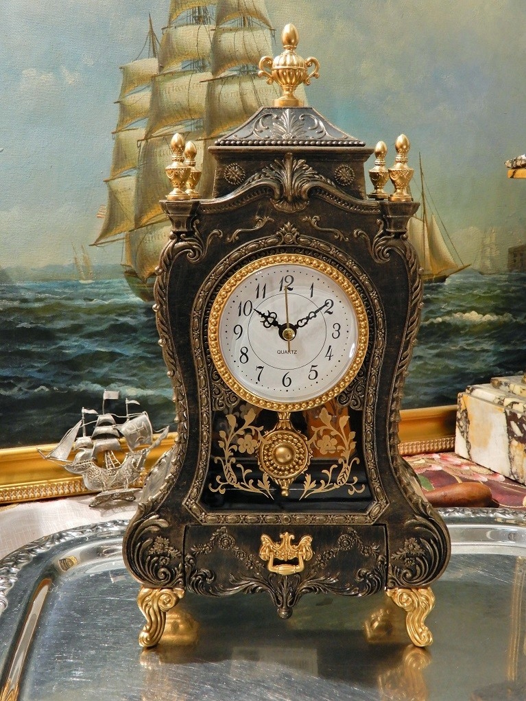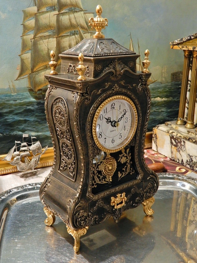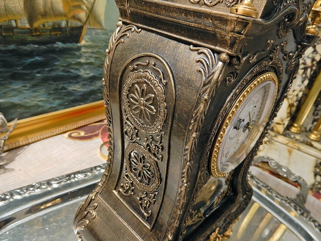 Приглашаю Вас купить красивую копию каминных часов. Корпус фантастически декорирован в стиле барокко. Часы выглядят красиво, но они пластиковые, поэтому легкие и некоторым могут показаться безвкусными. Визуально производит очень положительное впечатление.