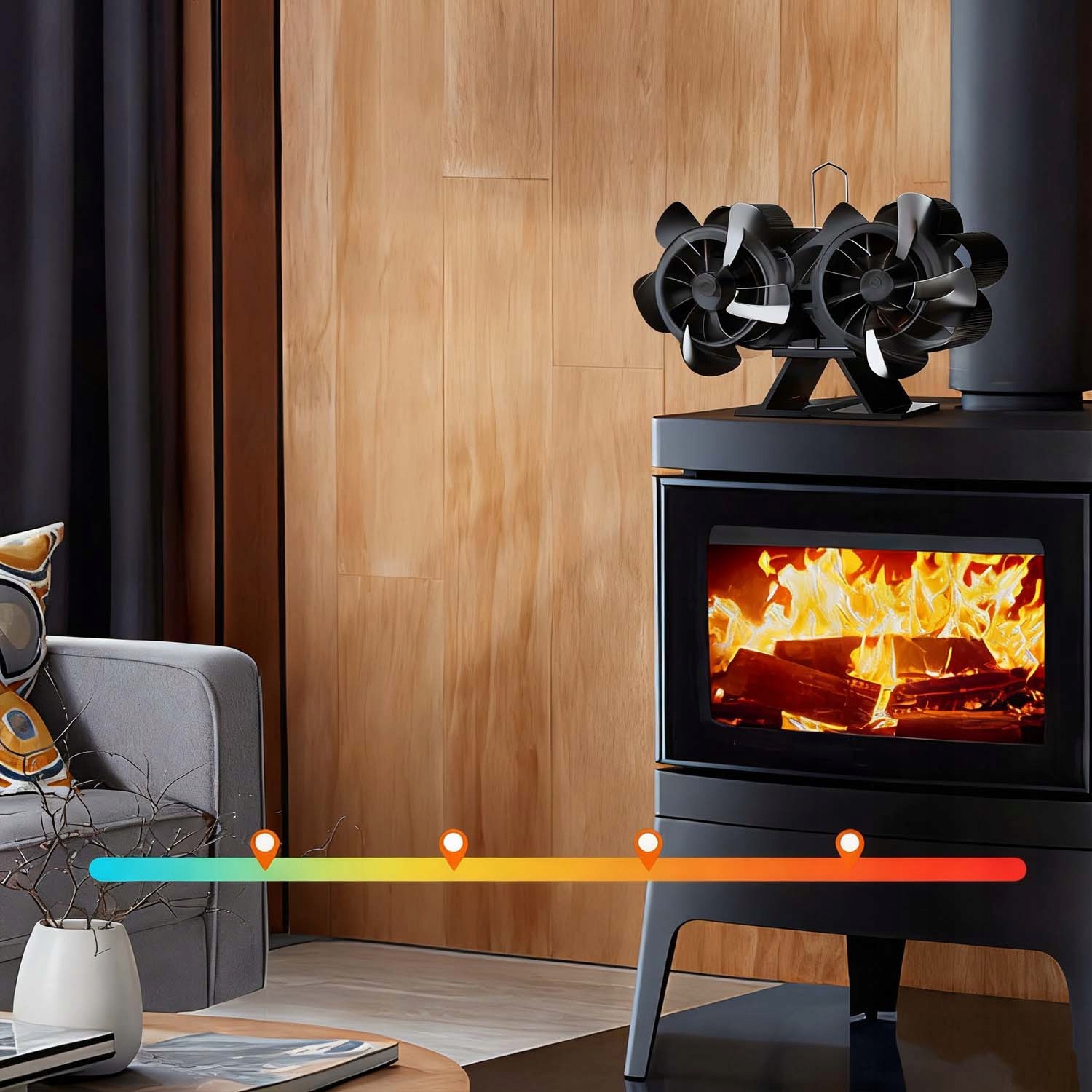 🔥🔥Двухмоторный вентилятор для плиты —12-лопастной вентилятор с тепловым приводом распределяет тепло более равномерно, поэтому вы получаете больше тепла там, где вам это необходимо.
