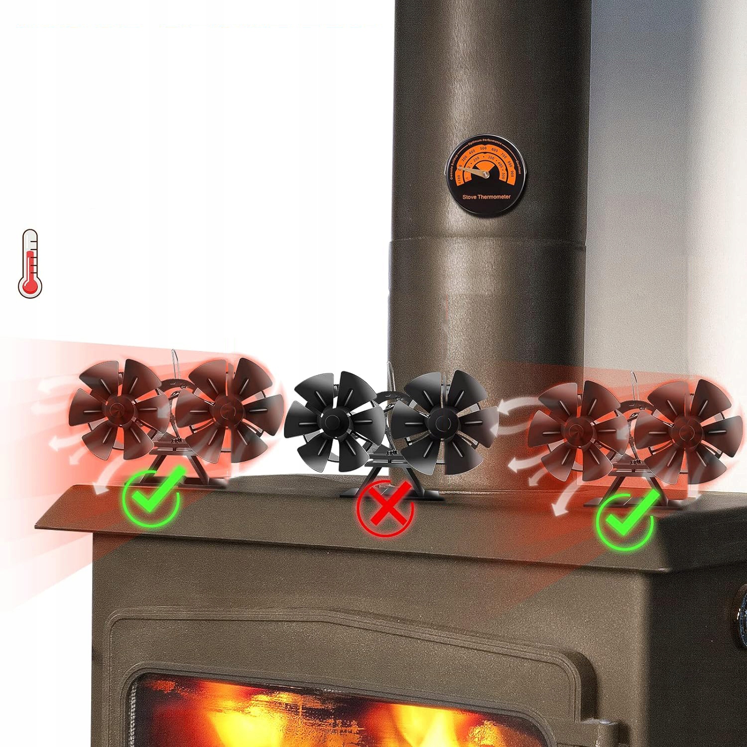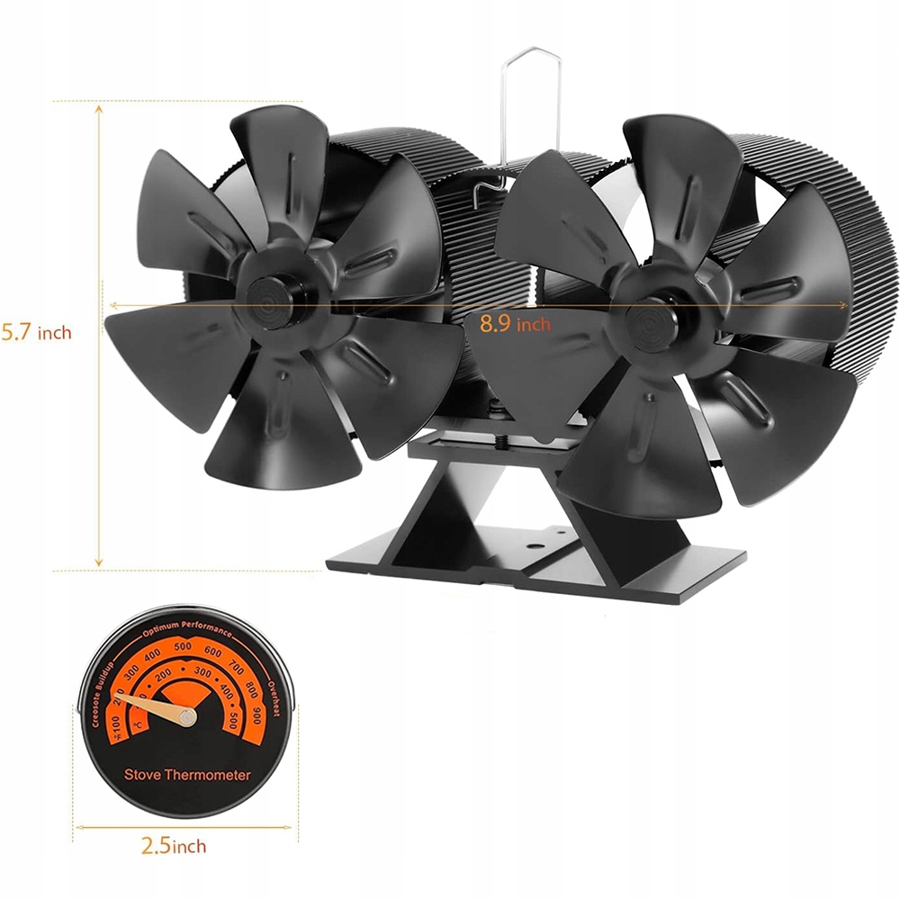Он имеет два двигателя и 12 лопастей, специально разработанных для этого каминного вентилятора, что позволяет вентилятору обеспечивать очень широкий диапазон тепловой поток, благодаря чему эффективнее отводит тепло от печи и быстрее повышает температуру в помещении.