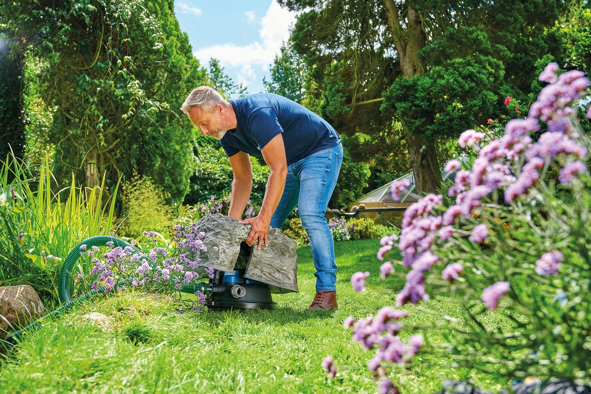 Маскирующая порода для фильтров давления. Фильтры олоклеарного давления Oase могут быть похоронены в земле рядом с прудом или потоком, благодаря которой видно только головка фильтра. Но они также могут быть легко скрыты с помощью гриля Oase Filtocap. Этого достаточно, чтобы нанести его, и его каменная серая, рок-внешний вид будет декоративным для всего набора.