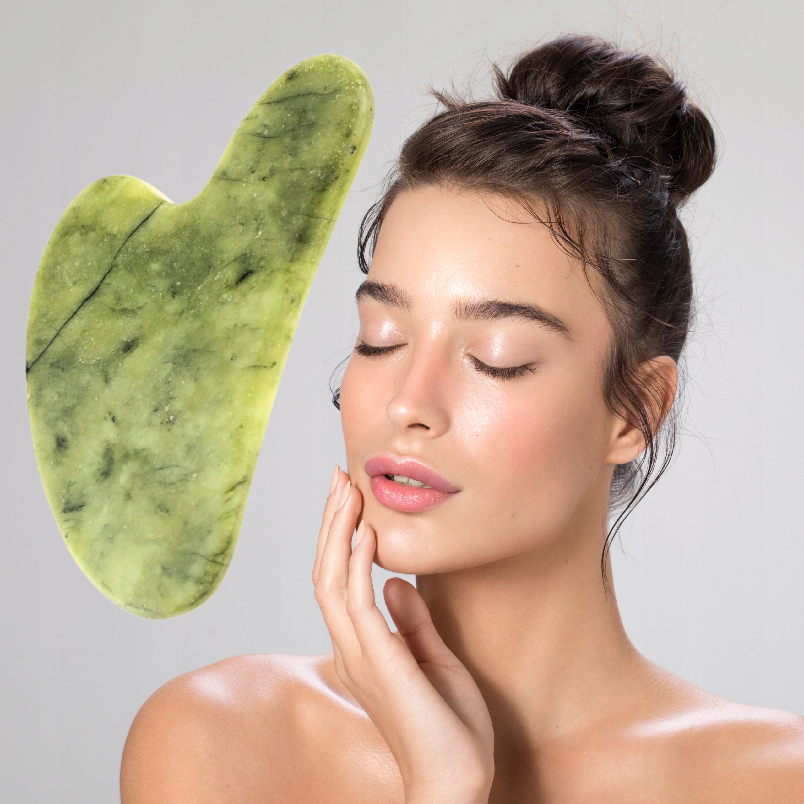 gua sha до нефритовой тарелки для массажа лица. Он имеет совершенно отличную форму от ролика - это плоская плитка с округлыми круглыми краями одной и той же цели, то есть используется для массажа лица и шеи. Тем не менее, это гораздо более продвинутое устройство. Сделано из зеленой нефрита, чьи позитивные действия особенно ценится жителями Азии. Китайцы называют его «камень молодости» . Согласно народным убеждениям, этот камень устраняет негативную энергию. Кроме того, он защищает от усталости, укрепляет организм и путем лечения всех внутренних расстройств продлевает жизнь. Кроме того, его зеленое разнообразие поддерживает функционирование почк.