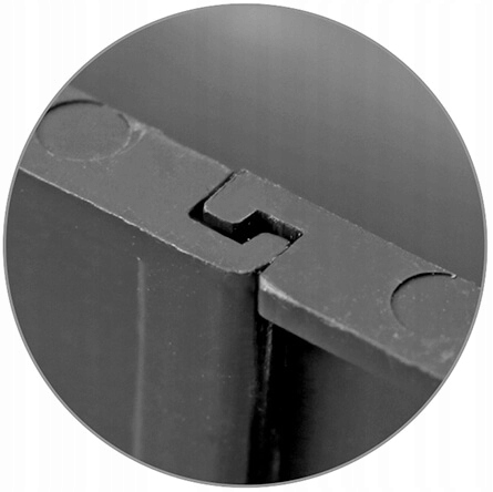 Решетки крепятся к лоткам с помощью защелки. Это пазогребневая система, позволяющая быстро собирать и разбирать решетку без необходимости использования дополнительных инструментов.