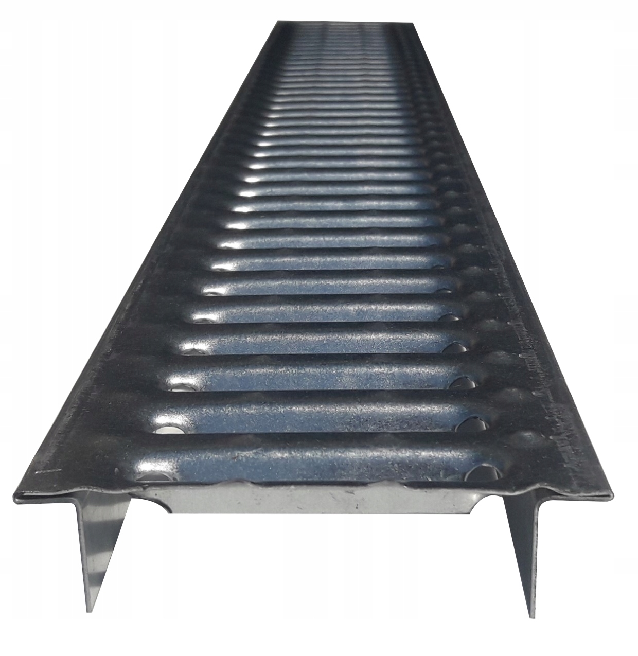 Решетка крепится в желобе/канале путем вдавливания в канал/канал. По бокам лист имеет 2-точечное тиснение (выступы) для улучшения его позиционирования в канале/корыте.
