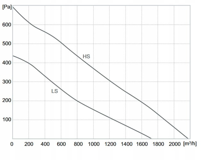 Вентилятор оснащен двухскоростным двигателем с однофазным питанием 230 В, 50 Гц, адаптированным для регулирования напряжения.