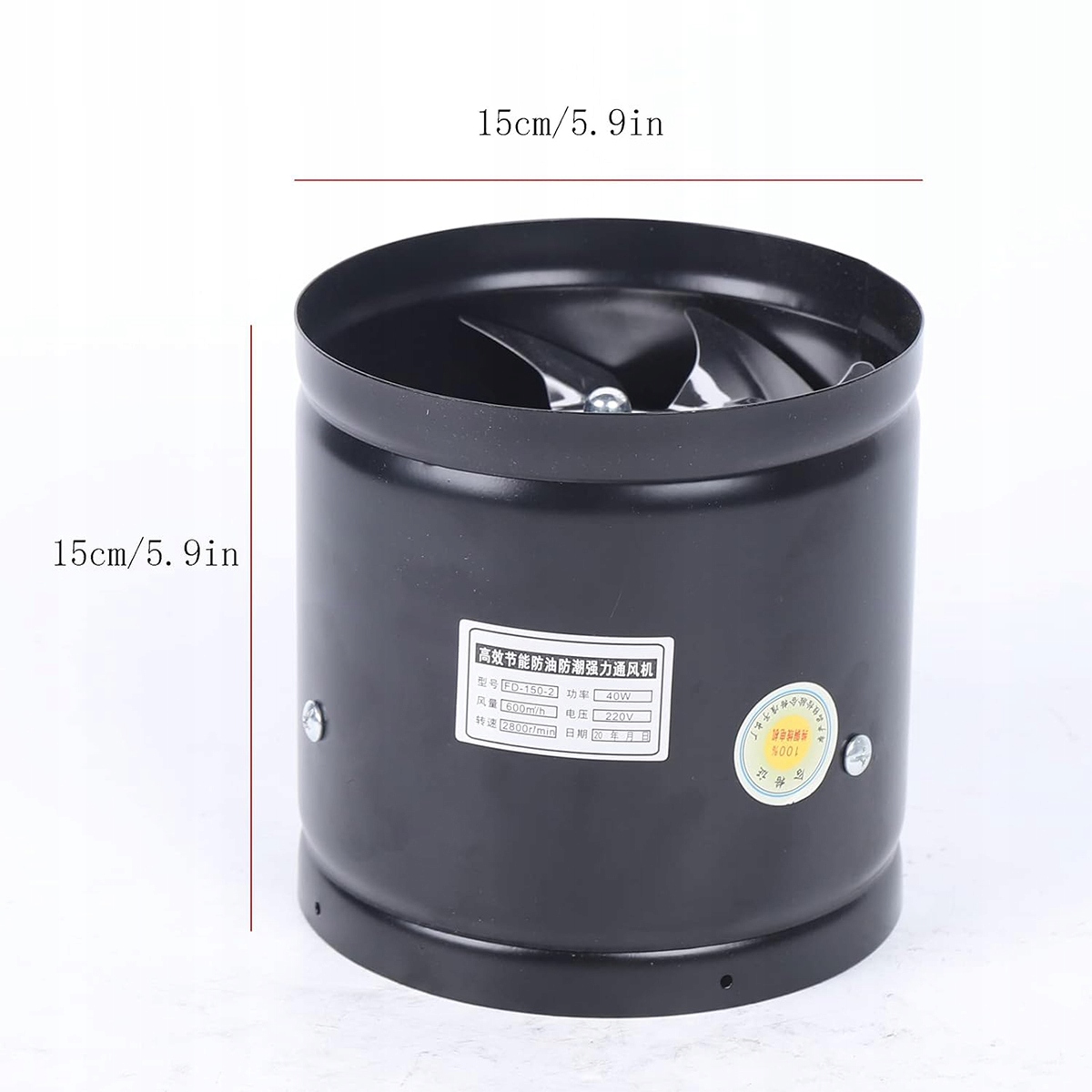 Вентилятор осевой трубчатый 530м³/ч Ø150 мм Приточно-вытяжной трубчатый вентилятор мощностью 40 Вт с 7 лопастями (черный)