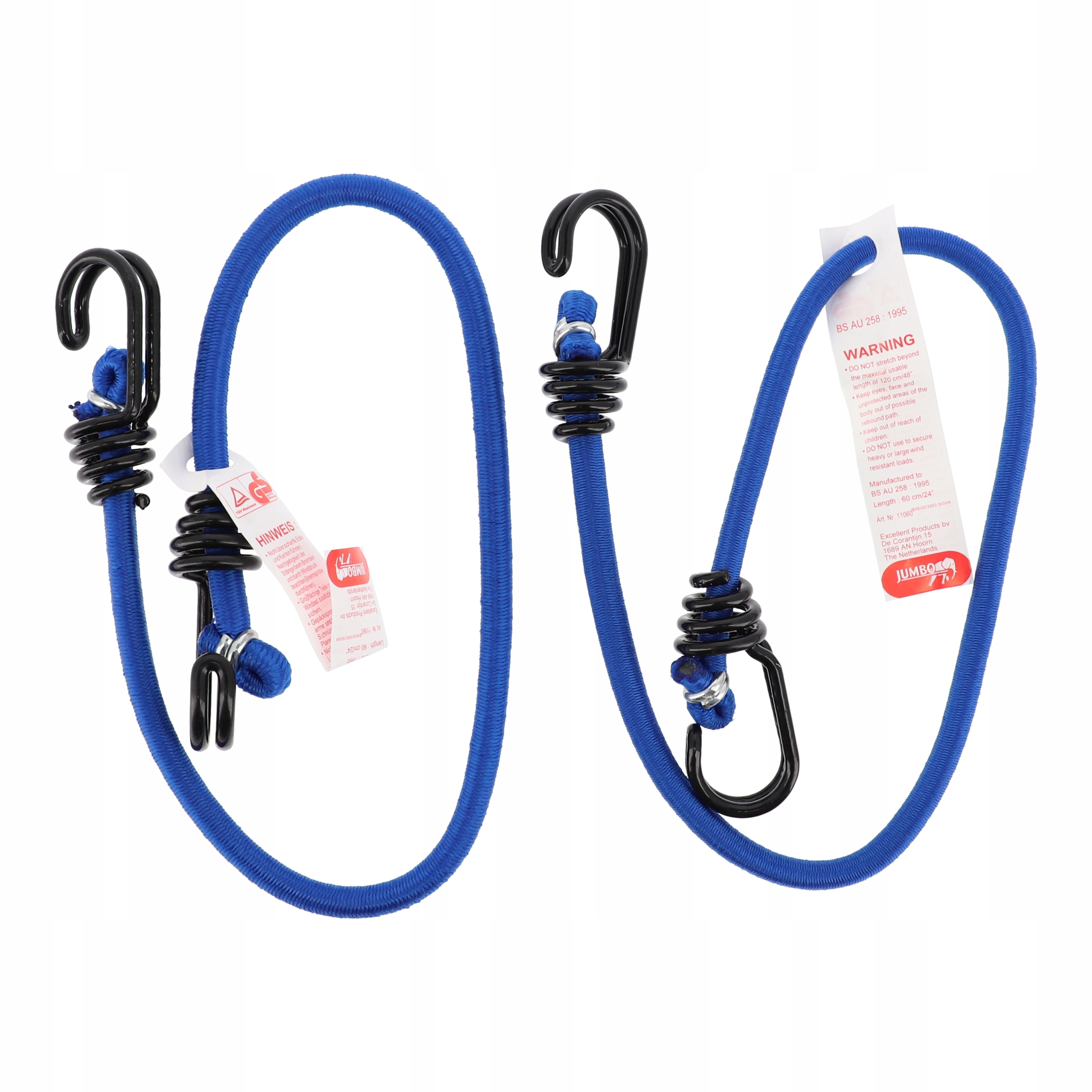 2 веревки для перевозки багажа с крючками 60 см синие