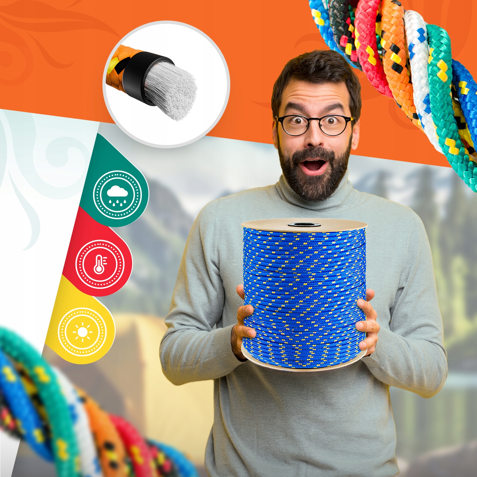 Канат полипропиленовый плетеный представляет собой универсальный и долговечный продукт, характеризующийся устойчивостью ко многим неблагоприятным внешним факторам.