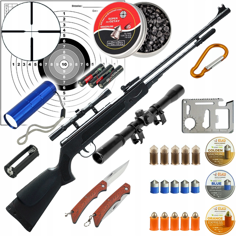 Основной боеприпас, входящий в комплект – пули калибра 4,5 мм. 250 шт. Плюс комплект стрелковых мишеней.