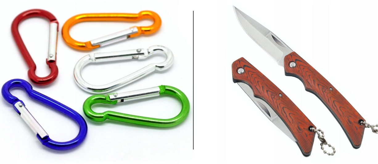 БРЕЛОК ДЛЯ БРЕЛКОВ С КАРАБИНОМ И КАРМАННЫЙ НОЖ (ЦВЕТ ВЫБИРАЕТСЯ СЛУЧАЙНО)