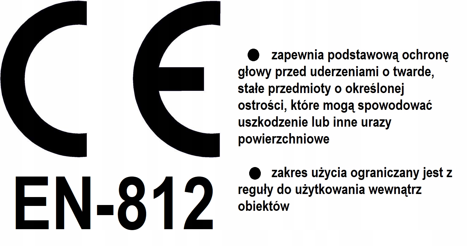 Шлем соответствует стандарту: EN-812 Инспектор по охране труда и технике безопасности должен принять решение о пригодности легкого шлема для данного рабочего места