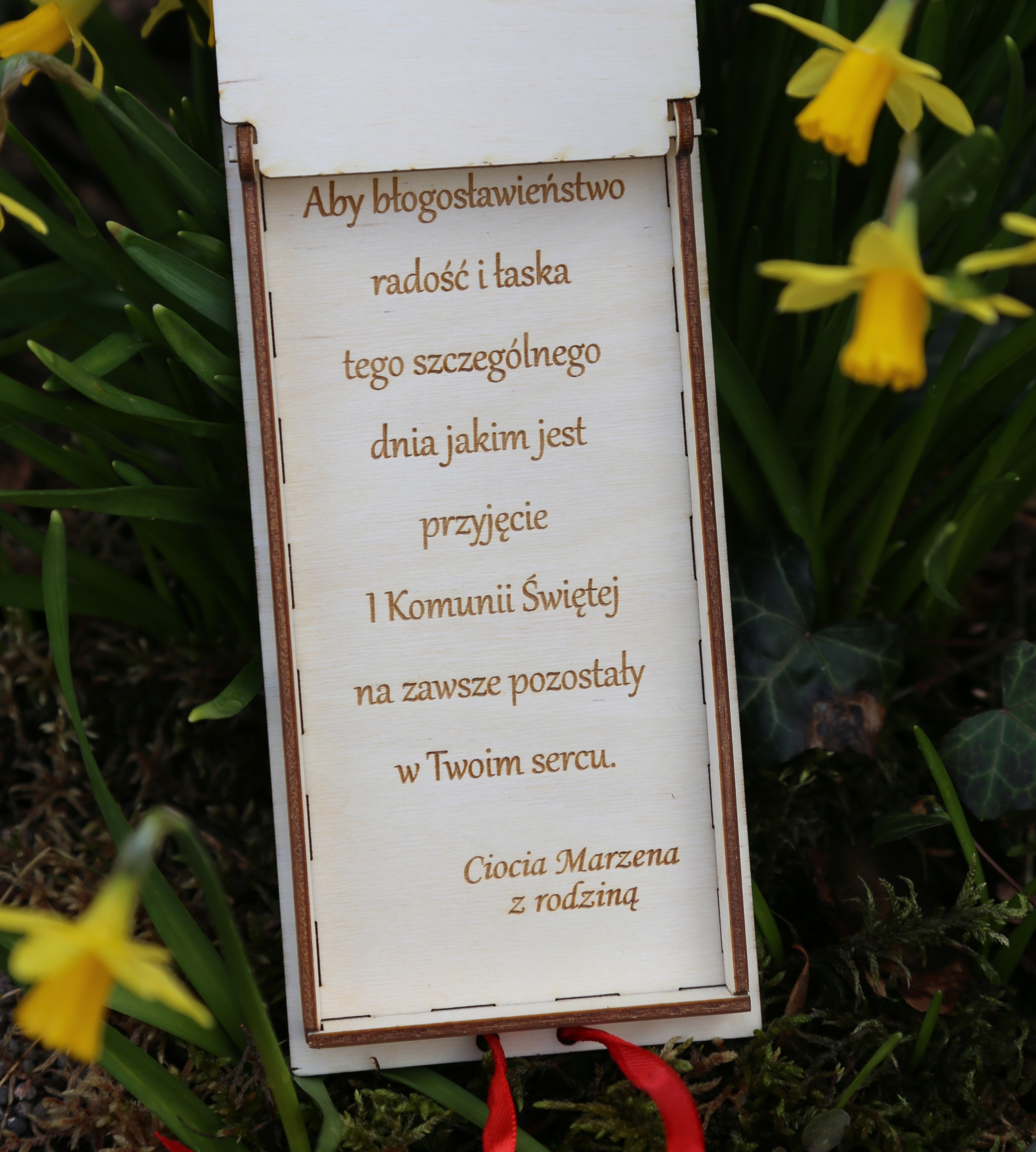 На внутренней стороне коробки выгравированы пожелания Первого Причастия с подписью - что делает подарок еще более ОРИГИНАЛЬНЫМ!