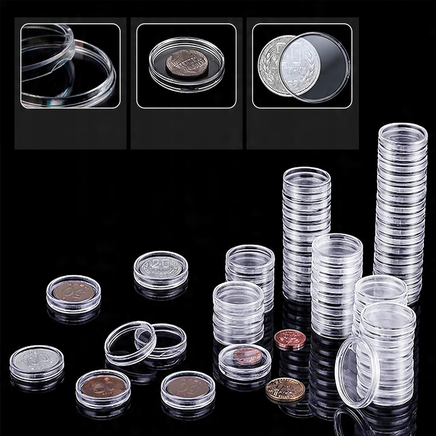 🌟🌟 ПРЕМИУМ-ДИЗАЙН: Эта монетница имеет хорошую герметичность, которая эффективно предотвращает пыль и окисление, что помогает защитить ваши монеты от пыли и коррозии. Каждая капсула с деталями имеет на внешнем крае отверстие в форме полумесяца, что позволяет легко открывать ее, не опасаясь повредить ногти.