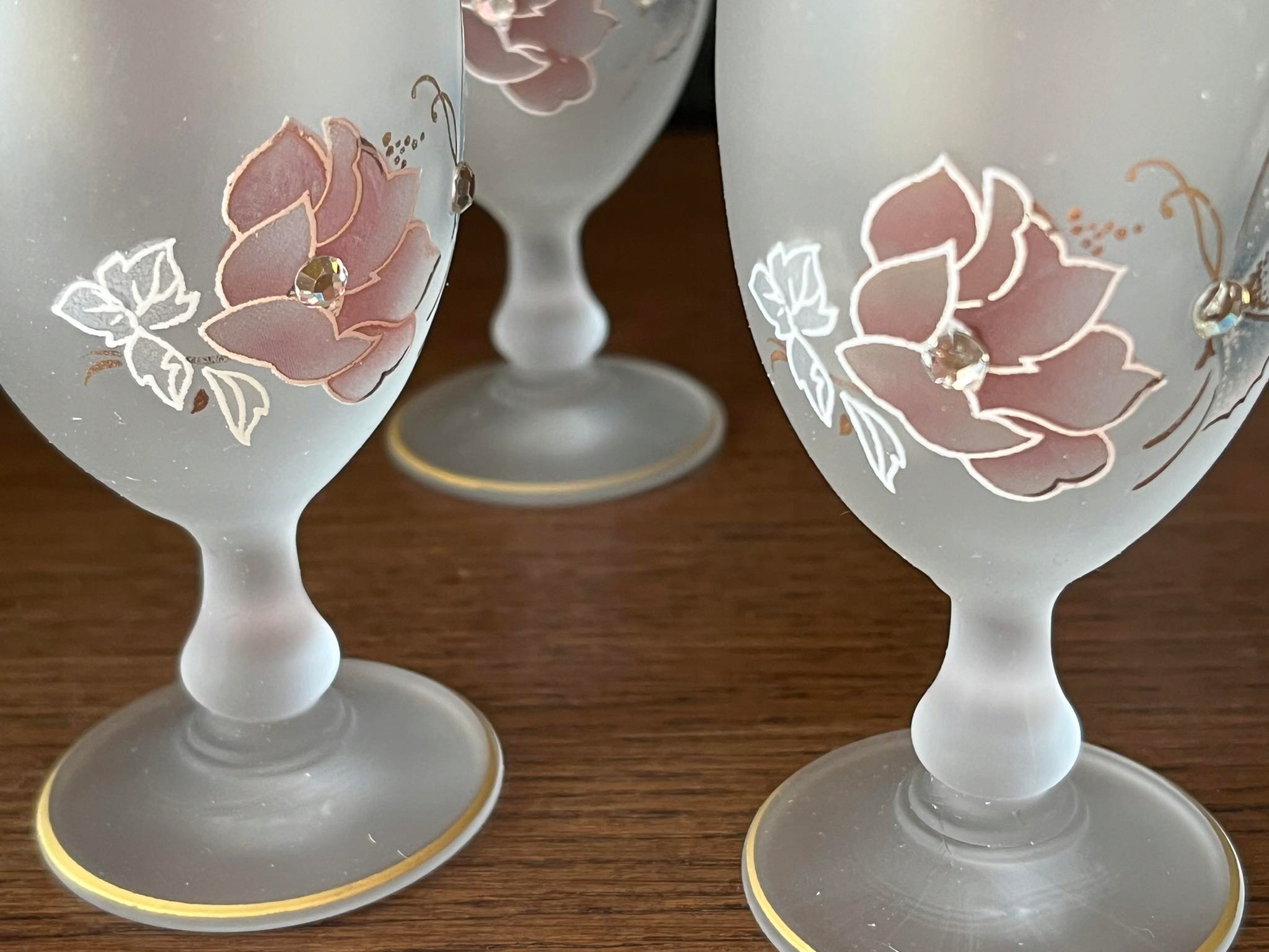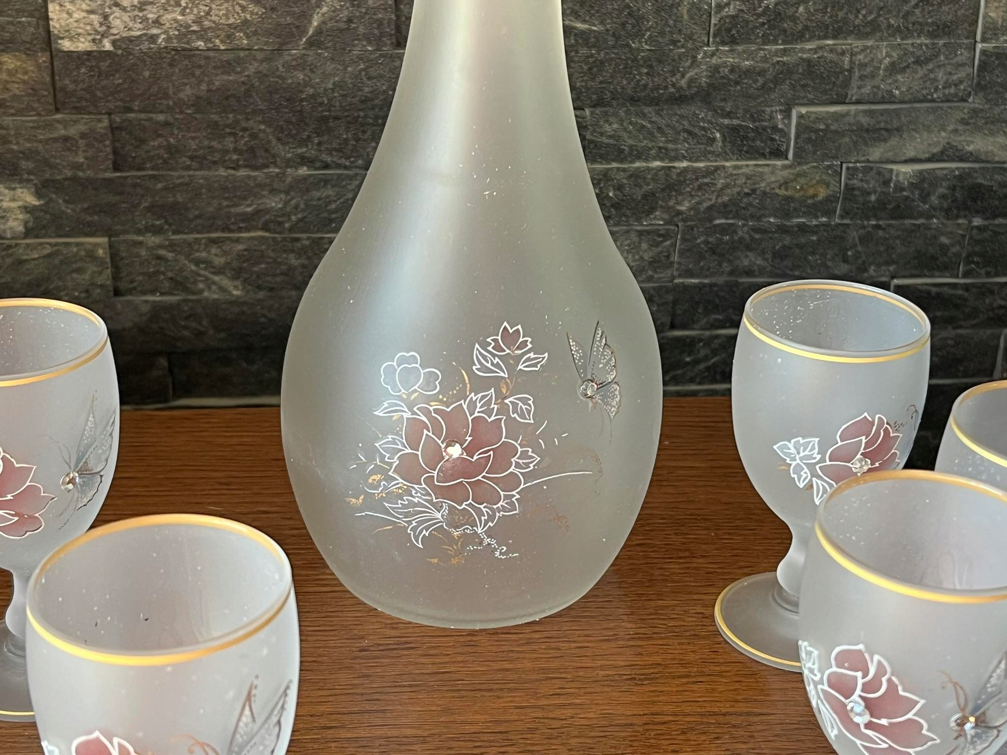 Карафе установлена рука, стеклянные стеклянные стразы бабочки.