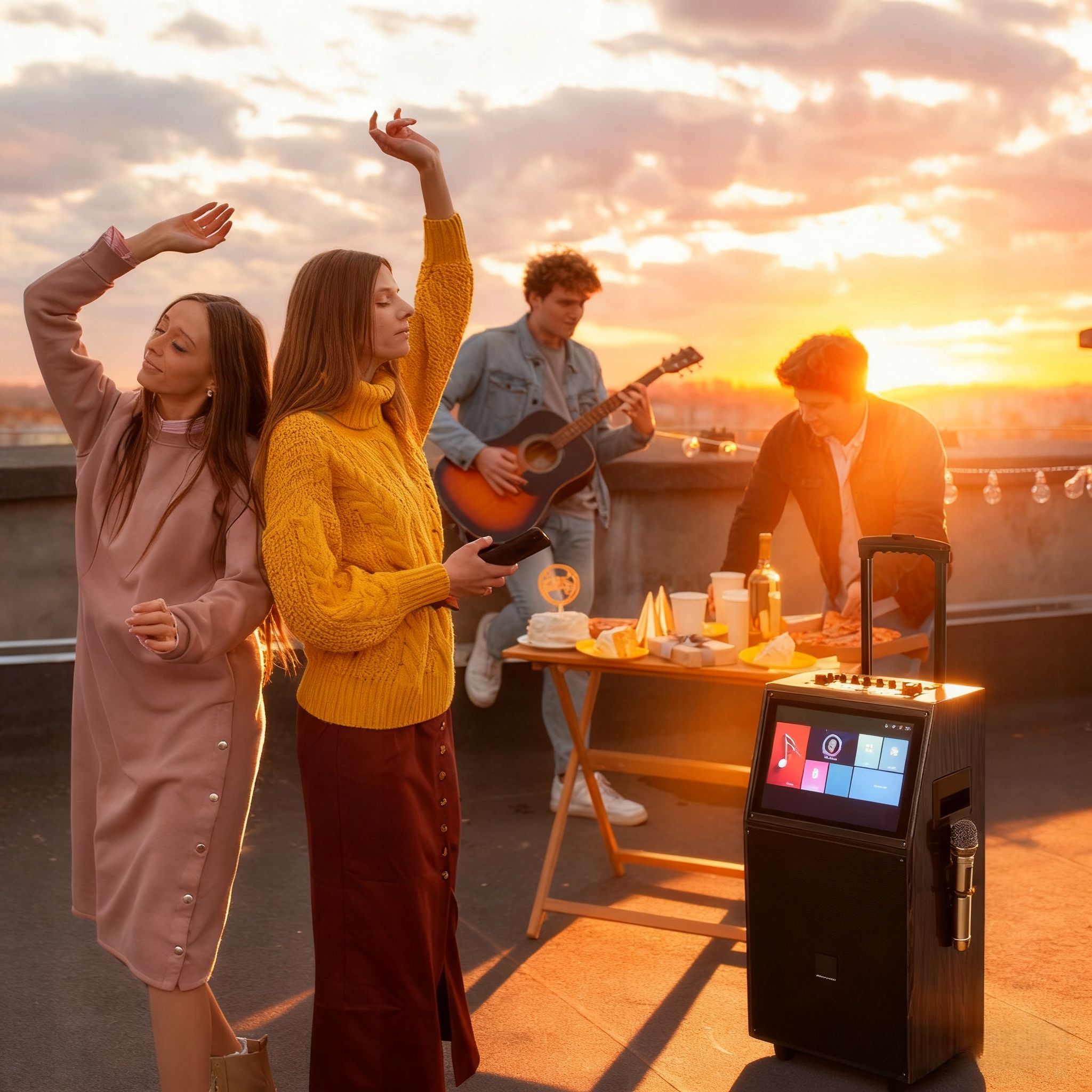 Это компактное и легкое устройство создано для удобной транспортировки и позволяет вам весело провести время в караоке, где бы вы ни находились — будь то барбекю на заднем дворе, пикник в парке или уютный вечер в компании друзей.