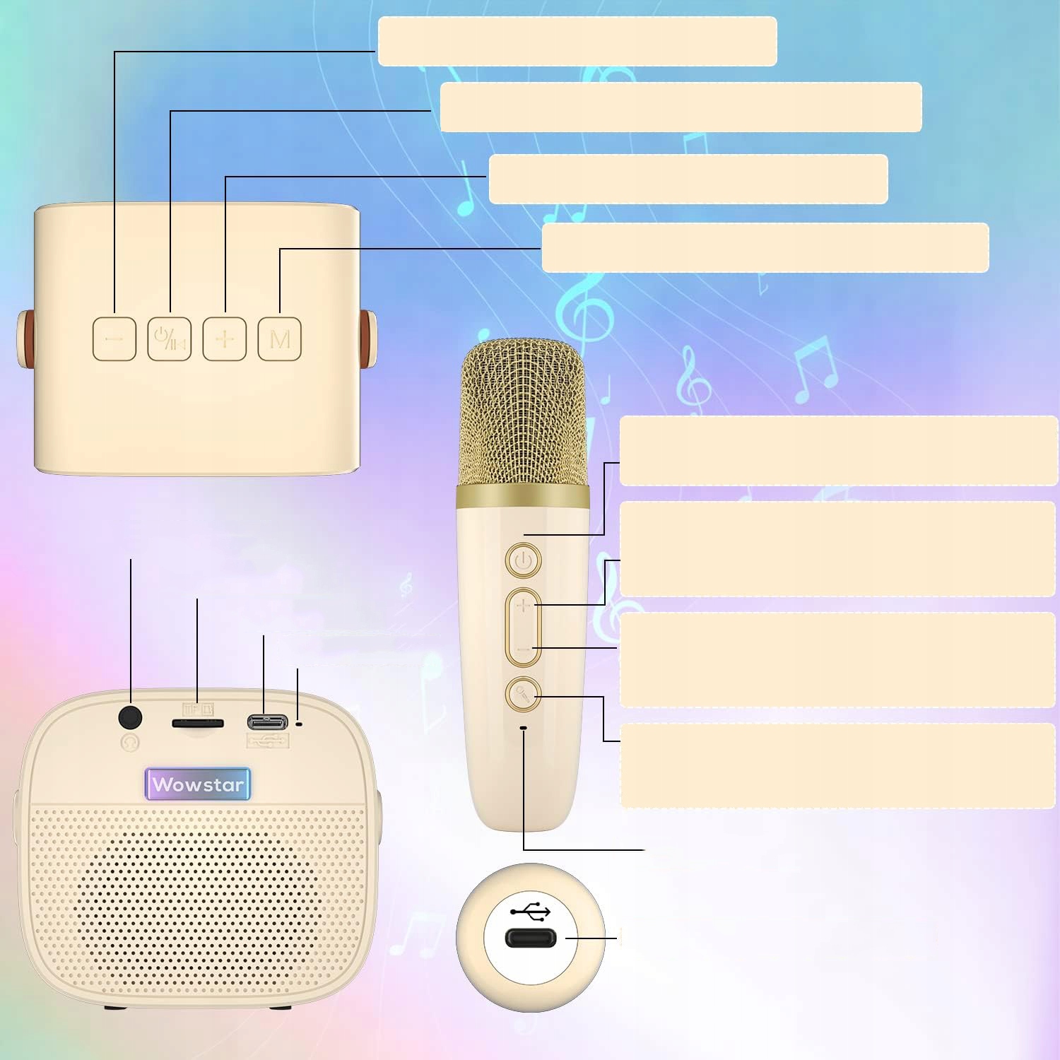 🎤 Супер качество звука - мини-караоке-аппарат со стильным внешним видом и простым управлением для детей и взрослых. Динамик Bluetooth оснащен мощным аудиодрайвером и усовершенствованным процессором цифровых сигналов, что делает звук более четким и позволяет избежать раздражающей обратной связи от микрофона.