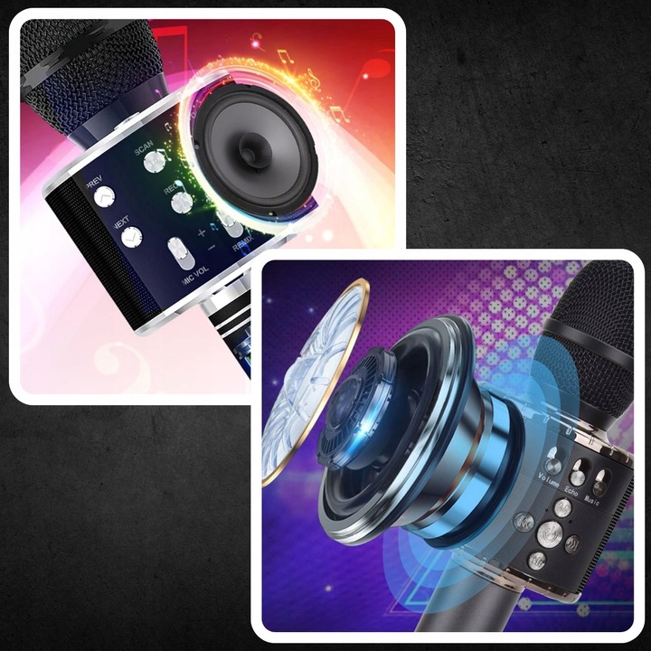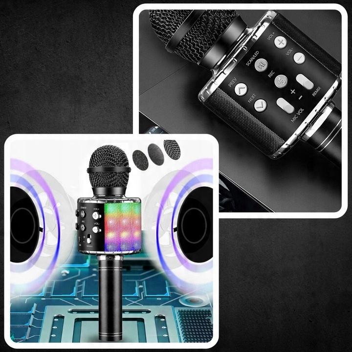 Микрофон имеет встроенный динамик и множество кнопок, предлагающих множество возможностей, их управление плавное, а качество звука, звук голоса и сама громкость хорошего качества, без шумов и помех. . Микрофон также идеально подходит в качестве автономного динамика для прослушивания собственного голоса или песен в формате MP3 с телефона, из Интернета или с карты microSD.