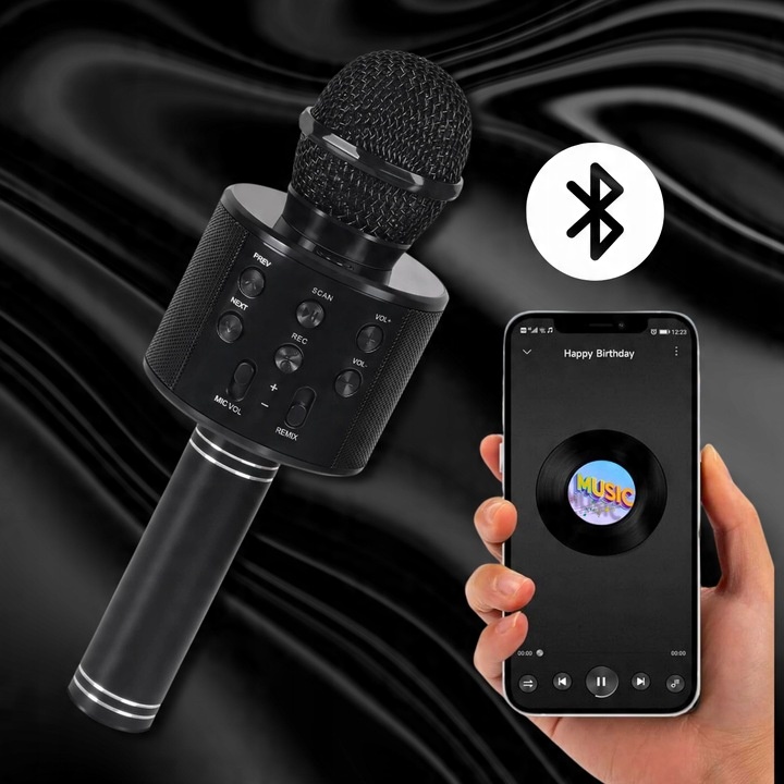 - МНОГОФУНКЦИОНАЛЬНЫЙ - микрофон с динамиком, позволяет слушать и записывать песни; подключается к внешним устройствам (например, телефону, планшету, SMART TV с операционной системой ANDROID или IOS) через Bluetooth 4.0 или прилагаемый кабель. После сопряжения звук будет воспроизводиться через динамики микрофона. Необходимо включить на устройстве музыку, приложение караоке или видео YouTube, после чего вы услышите музыку в динамиках, а на сопряженном устройстве отобразится текст. Микрофон также отлично подходит для записи интервью, радиоподкастов, потокового вещания и многих других ситуаций.