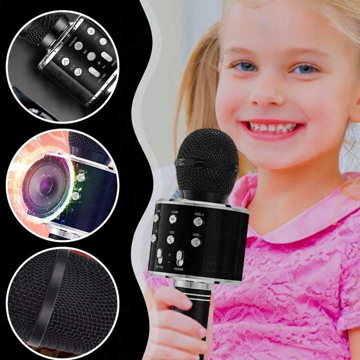 Почувствуйте себя звездой сцены и отлично проведите время! Многофункциональный караоке-микрофон обеспечит отличное развлечение детям и взрослым. И, возможно, это также пробудит у вас интерес к пению, станет источником вдохновения и повлияет на ваше детское будущее и вашу музыкальную карьеру.