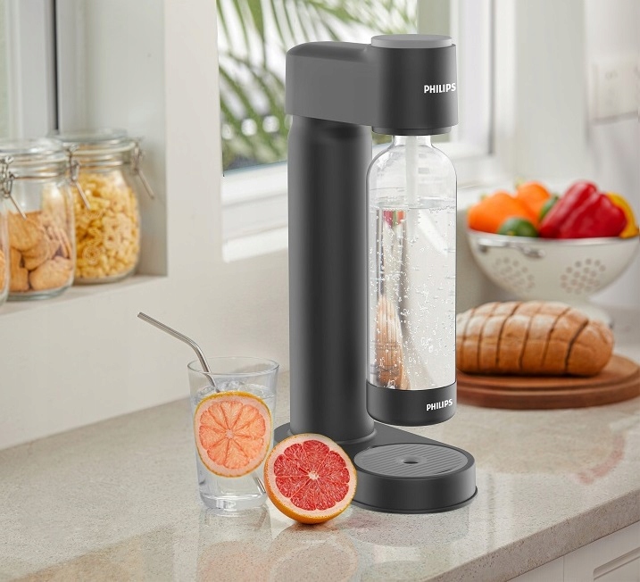 Использование карбонизатора Philips — это не только комфорт, когда свежая газированная вода всегда под рукой. Это также означает реальную экономию и защиту окружающей среды. Благодаря тому, что из одного картриджа с CO2 мы можем производить до 60 литров воды с пузырьками, мы каждый раз экономим около 100 злотых. Нам также не нужно носить с собой тяжелые бутылки из магазина и мы производим гораздо меньше пластика.
