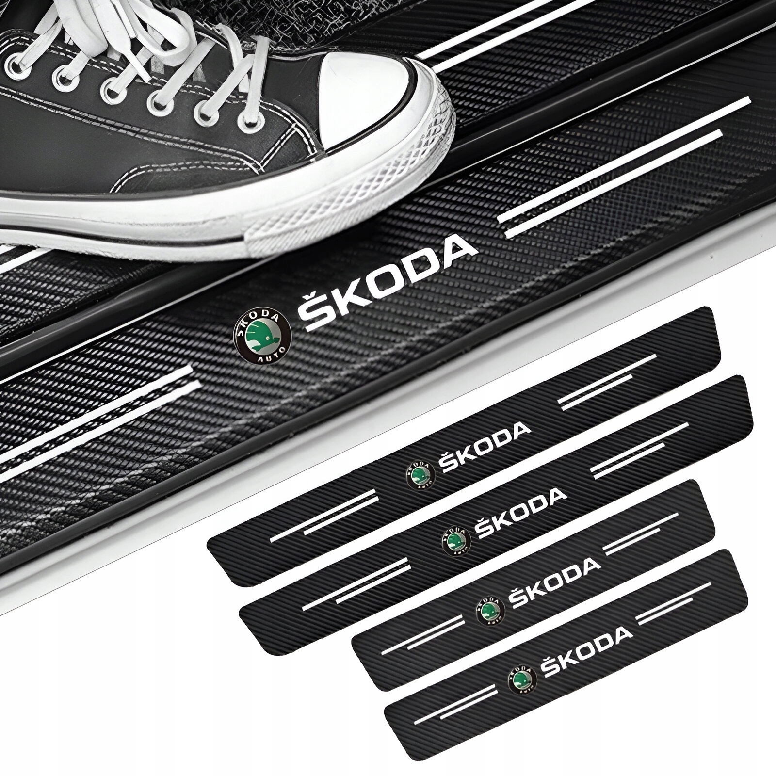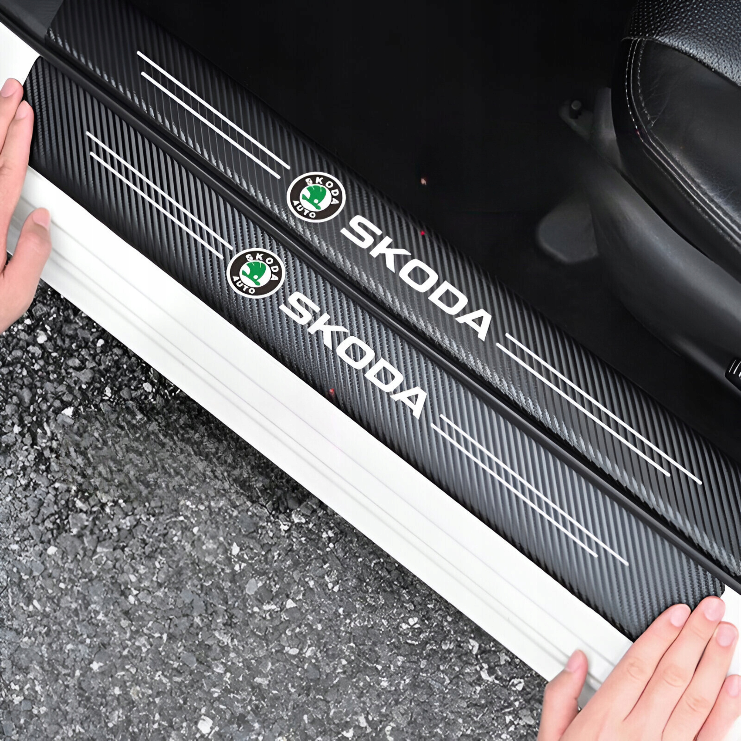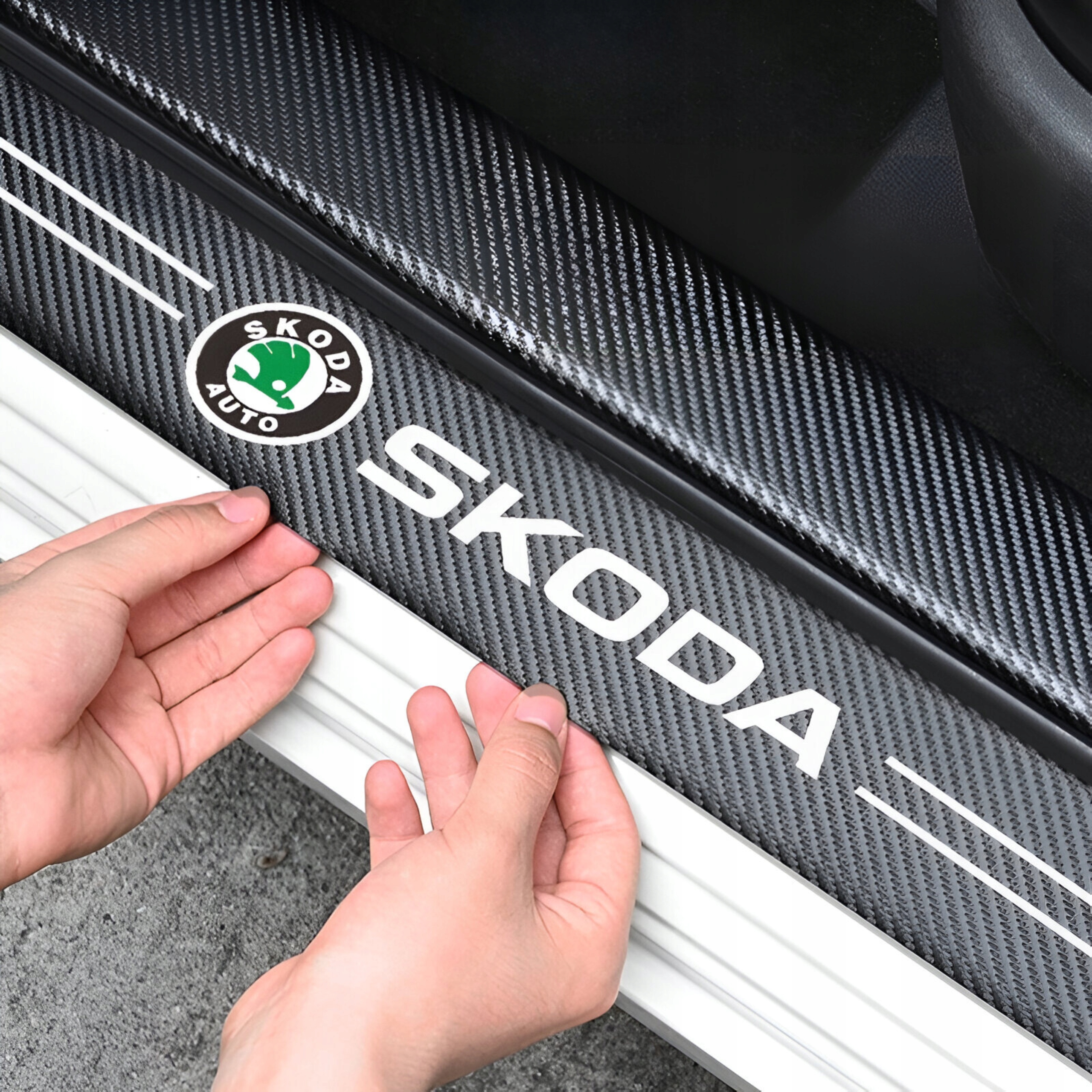 ✅НАКЛЕЙКИ ЗАЩИТНЫЕ КРЫШКИ ФОЛЬГА ДЛЯ НАКЛАДОК 4 ШТ. SKODA ЧЕРНЫЙ КАРБОН