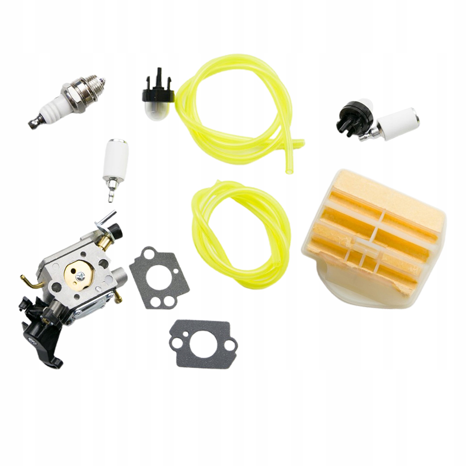 В комплект поставки входят: 1 карбюратор, 2 прокладки, 2 груши подкачки, 2 топливопровода, 1 воздушный фильтр, 1 воздушный фильтр.