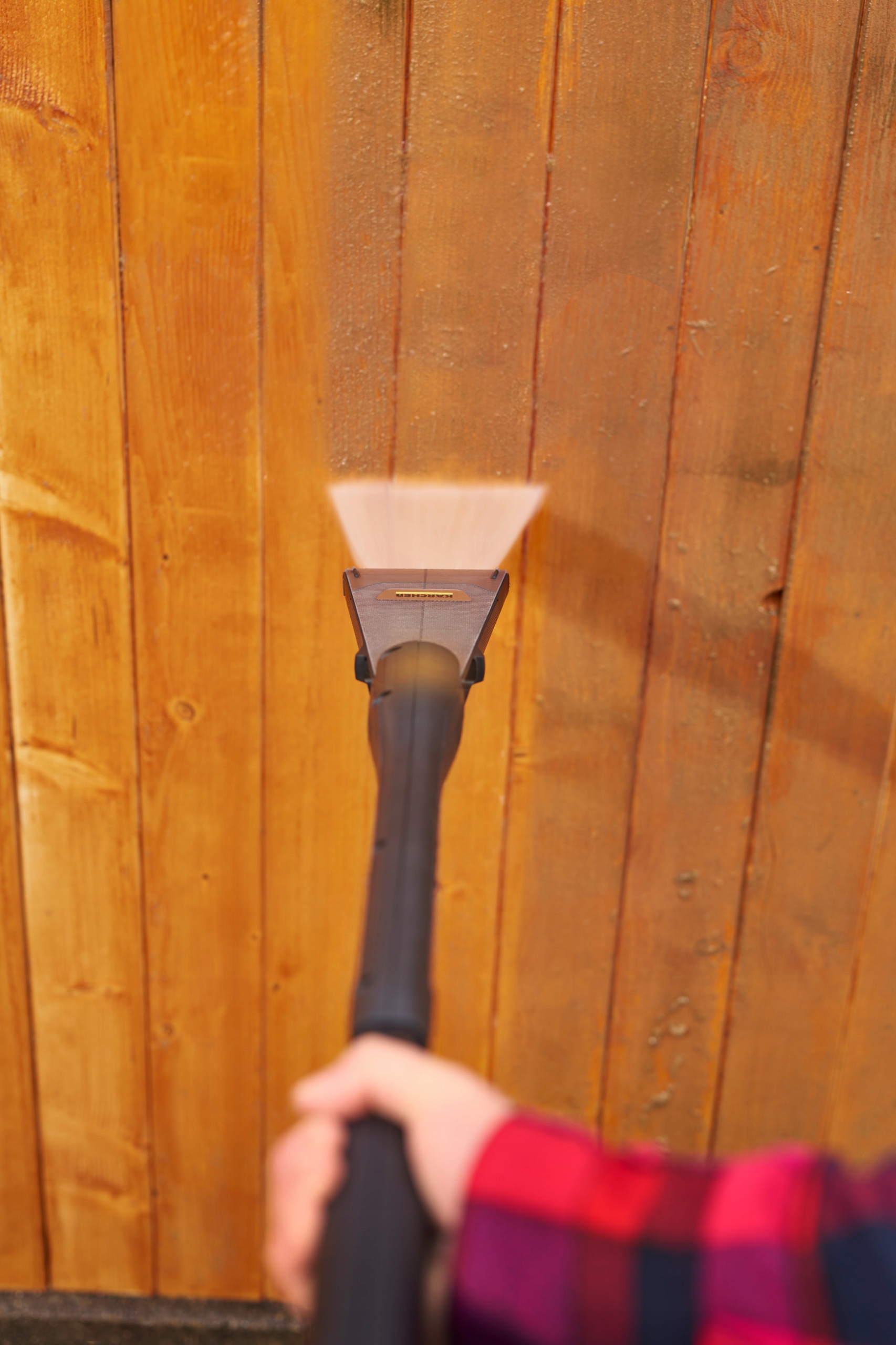 Благодаря равномерному удалению грязи даже чувствительных материалов например, окрашенные поверхности или дерево, можно чистить без колебаний. Если снять наконечник со струйного копья, стойкие загрязнения можно удалить с более короткого расстояния. eco!Booster 180 подходит для всех моек высокого давления Kärcher класса K 7.