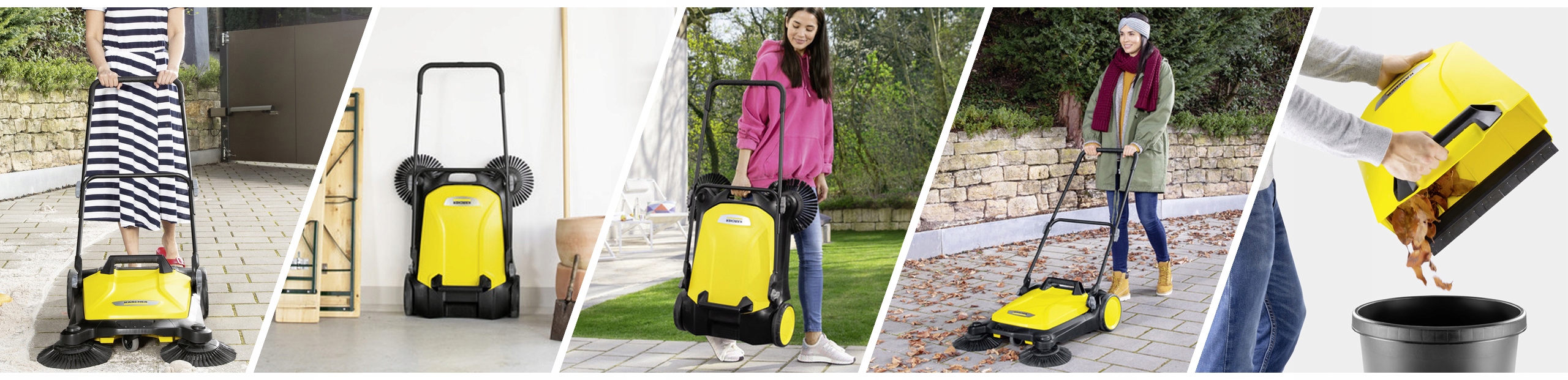 Независимо от сезона, благодаря подметальным машинам Kärcher вы сможете быстро убрать переулки, подъездную дорожку или патио . S 4 Twin эффективно собирает листья, пробки от бутылок, бумагу, гравий, песок, не поднимая пыли.